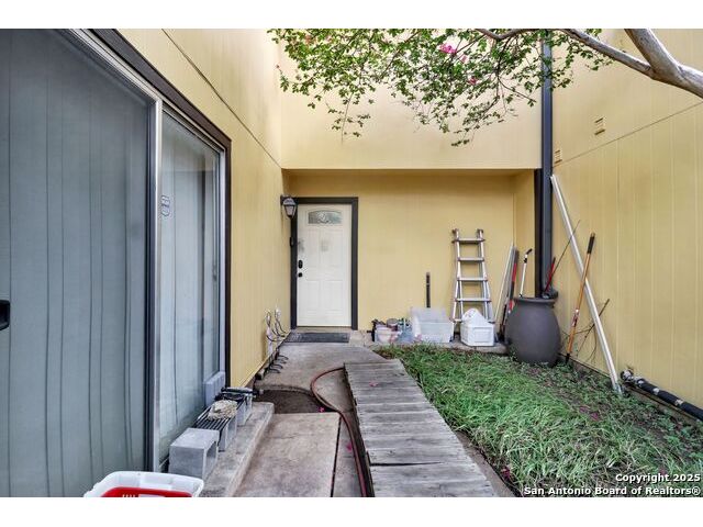 Investor Value-Add Opportunity! Priced for renovation, this 3 bedroom, 2 bath townhome offers exceptional upside in highly desirable Woodstone Townhome community. Desirable floor plan: primary suite on the main level, a separate dining room or an office/study downstairs, and secondary bedrooms upstairs with a Jack-and-Jill style bath - an appealing setup for families or roommates, boosting rentability. Already upgraded with a new HVAC/heat pump (2022) and blow-in insulation, plus a transfer-warranty Hardie plank siding (2016) with rock wool insulation, new roof with radiant barrier and decking (2016) - water heater replaced in 2020. Update cosmetics, flooring & interior finishes to maximize ROI. Conveniently located with strong tenant demand: close to major retail, dining, parks (including Phil Hardberger Park less than 10 minutes away), excellent schools, and quick access to Loop 410 & 1604. Ideal for investors looking to flip or hold for rental income in a highly desirable area of North San Antonio.