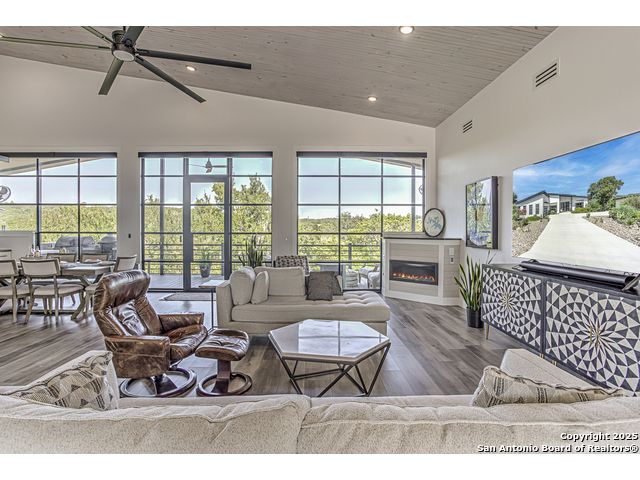 Discover modern luxury in this stunning newer 4-bedroom, 3.5-bath home located in the heart of Spring Branch, TX. This property is a true showpiece, designed with sleek style, cutting-edge technology, and a layout perfect for entertaining. The open floor plan flows seamlessly, centered around a huge gourmet kitchen that features high-end appliances, custom cabinetry, and an oversized island for gatherings. The spacious living areas are enhanced by incredible automation throughout the home, giving you effortless control of lighting, climate, and more at the touch of a button. The primary suite is a private retreat, complete with a spa-like bathroom that boasts an extraordinary double steam shower with advanced electronic controls. Every detail has been thoughtfully designed to provide comfort and sophistication. Step outside to enjoy the ultimate backyard oasis featuring a unique container pool, a large hot tub, and plenty of space to relax or entertain under the Texas sky. This property is a must-see for anyone seeking a truly modern lifestyle in a peaceful Hill Country setting.