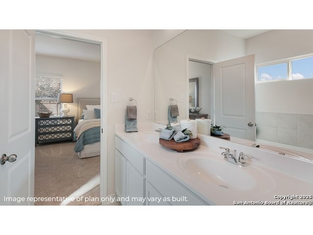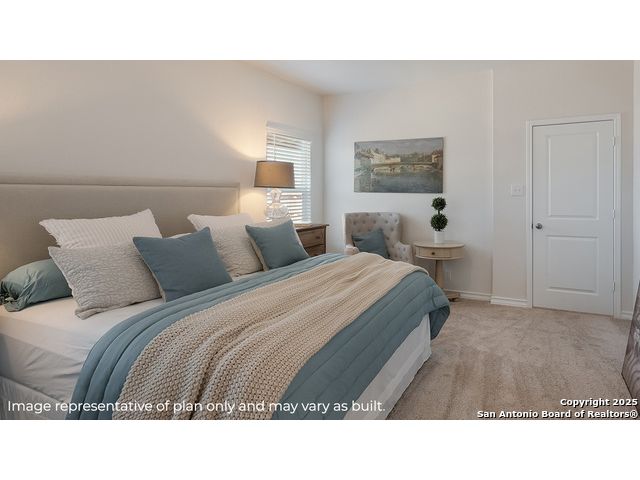 Step into The Landry, our largest two-story home at Stonehill in San Antonio, TX. is one of our larger floor plans. This layout features 5 bedrooms, 3.5 bathrooms and a 2-car garage. The Landry also offers 4 classic front exteriors and 2678 square feet of comfortable living. The Landry features classic designs and modern features that blend seamlessly to create the perfect space for you and your loved ones. The covered front patio (per plan) opens into a beautiful foyer and formal dining room with abundant natural light from multiple windows. The dining room leads into an open-concept kitchen with stainless steel appliances, quartz countertops, white subway tile backsplash, and an angled kitchen island that faces the spacious living room, perfect for entertaining! The private main bedroom suite is also located off the living room. Your bedroom area is spacious and you'll relax in style with large windows and quality carpet flooring. The ensuite bathroom features ceramic tile flooring, desirable double vanity sinks, separate garden tub and walk-in shower, a private water closet, and large walk-in closet with plenty of shelving. The second story of The Landry has so much to offer! A large loft area is waiting for you at the top of the stairs. Whether you use this space as a game room, office, or a media room, there is sure to be comfort. Your remaining 4 bedrooms are all located off the loft and include large windows, quality carpet flooring and spacious closets. You will also find 2 full bathrooms upstairs, complete with bath tub and shower combos and single vanity sinks. This floor plan even has a linen closet! Additional features include tall 9-foot ceilings, 2-inch faux wood blinds throughout the home, luxury vinyl plank flooring in the entry, family room, kitchen, and dining area, ceramic tile in the bathrooms and utility room, pre-plumb for water softener loop, and full yard landscaping and irrigation. You'll enjoy added security in your new home with our Home is Connected features. Using one central hub that talks to all the devices in your home, you can control the lights, thermostat and locks, all from your cellular device.