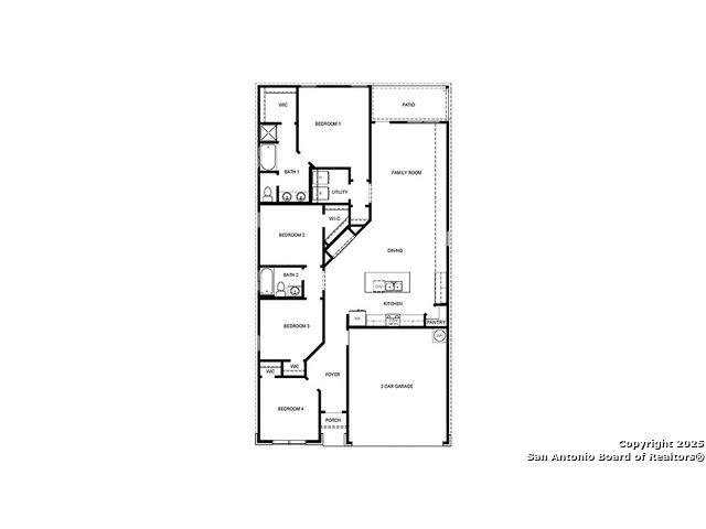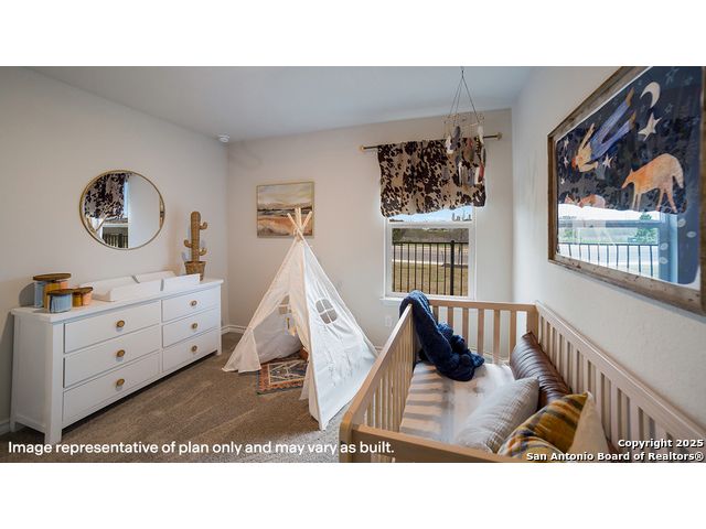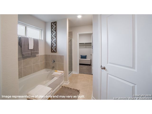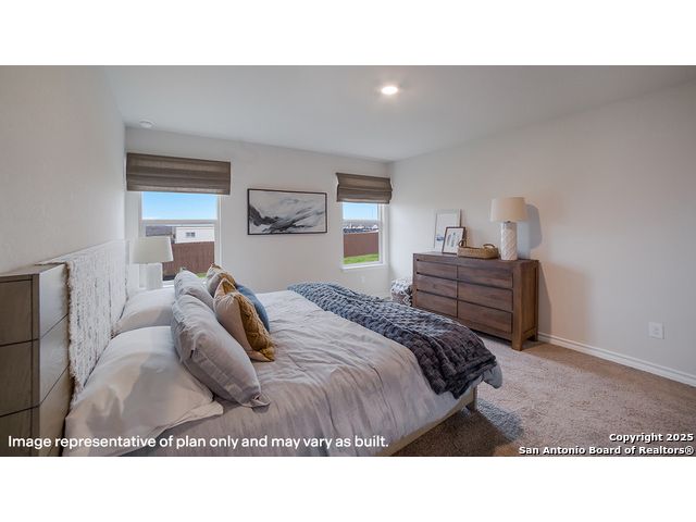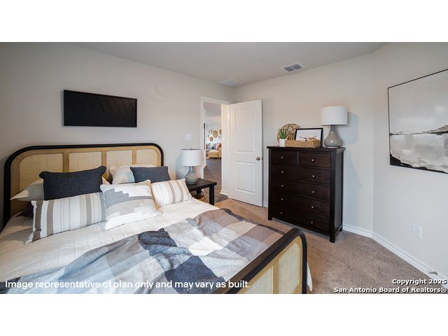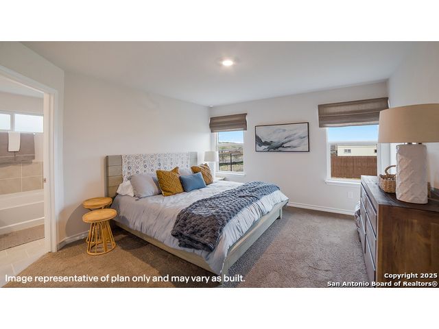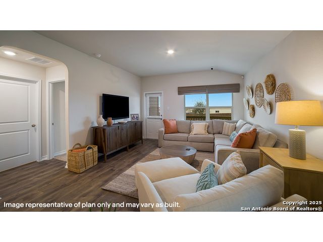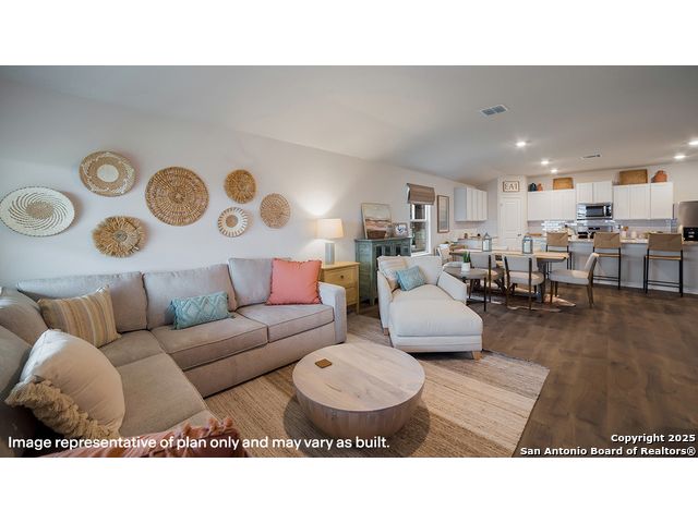 The Bryant is a stunning single-story home featured at Stonehill in San Antonio, TX. The Bryant is sure to impress with its selection of 3 front exteriors, 4 bedrooms, 2 bathrooms and 2-car garage. Welcome guests as they walk through the elongated foyer with a decorative nook wall feature to the spacious eat-in kitchen. Facing the blended dining area and living room, the kitchen includes an oversized island, corner pantry with shelving, plenty of cabinet storage, quartz countertops, stylish subway tile backsplash, stainless steel appliances, and a gas cooking range. The private main bedroom is located at the back of the house and features a relaxing ensuite bathroom complete with double vanities, a garden tub, walk-in shower, and a spacious walk-in closet. If privacy is your top priority, this bathroom comes standard with a separate water closet. Two secondary bedrooms are located off the entry and the other is centrally located off the kitchen. All have quality carpet, spacious closets and windows for plenty of natural lighting. Whether these rooms become bedrooms or other bonus spaces, there is sure to be comfort and functionality. Additional features include tall 9-foot ceilings, 2-inch faux wood blinds throughout the home, luxury vinyl plank flooring in the entry, family room, kitchen, and dining area, ceramic tile in the bathrooms and utility room, and pre-plumb for water softener loop. Relax outside on a covered patio (per plan) located off the family room and enjoy full yard landscaping and full yard irrigation. You'll enjoy added security in your new home with our Home is Connected features. Using one central hub that talks to all the devices in your home, you can control the lights, thermostat and locks, all from your cellular device.