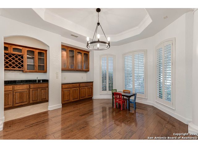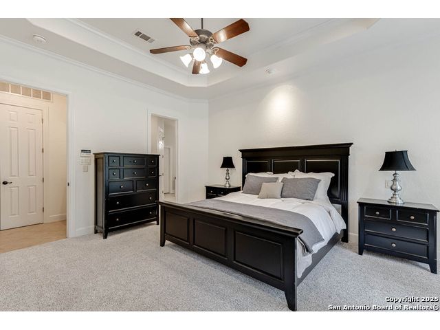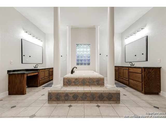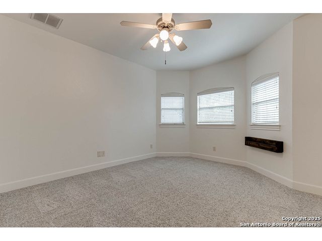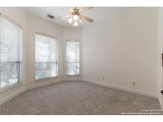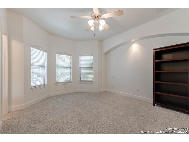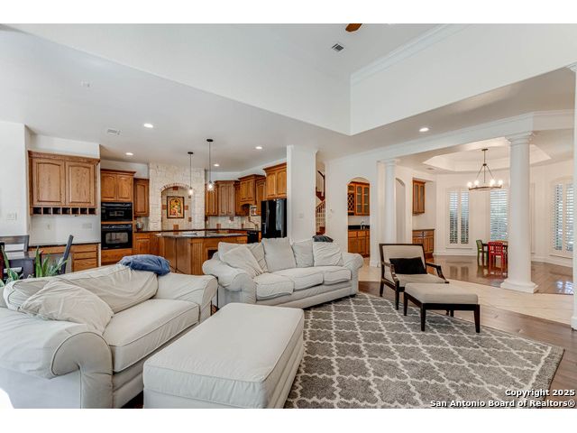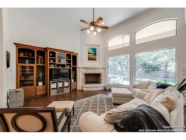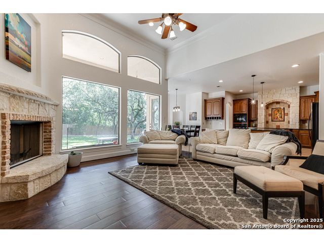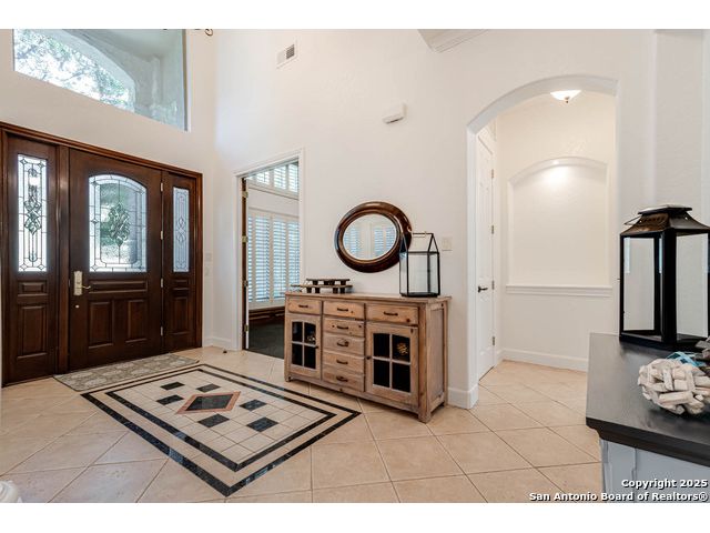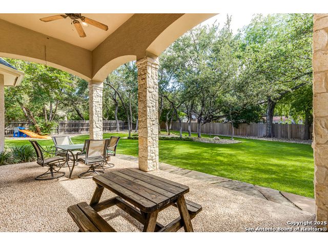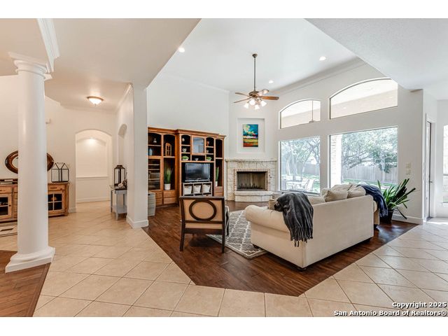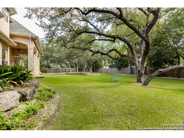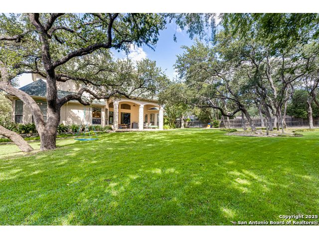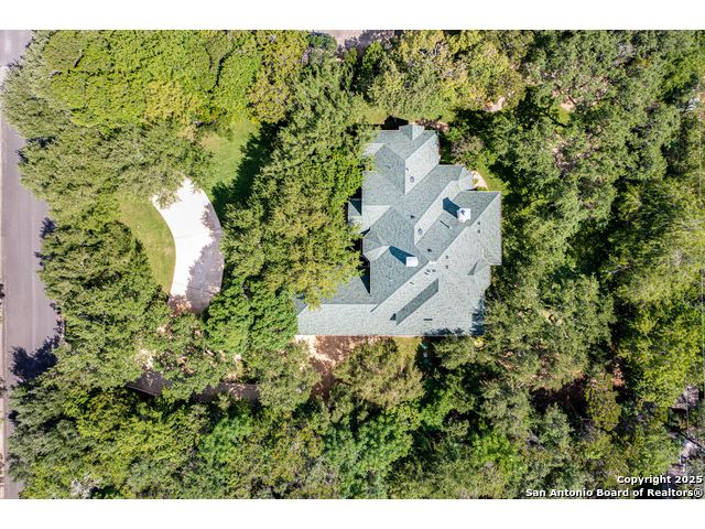 Beautifully set on a 3/4-acre lot in Shavano Park, this 4-bed, 4 full & 2 half-bath home offers 3,670 sq. ft. of light-filled living. A circular drive and 3-car garage create a grand arrival, while soaring ceilings and large windows bring warmth throughout. Floor plan includes a private study, formal dining with wet bar, and spacious kitchen with abundant counter space. The primary suite features a recently refreshed bath with dual vanities, garden tub, and walk-through shower. A secondary bedroom down provides guest or multigenerational flexibility. Upstairs offers a game room plus a 19x32 attic with future potential for a media room, gym, or hobby space. Surrounded by mature oaks, this park-like property blends timeless charm and comfort in one of San Antonio's most desirable neighborhoods.