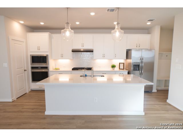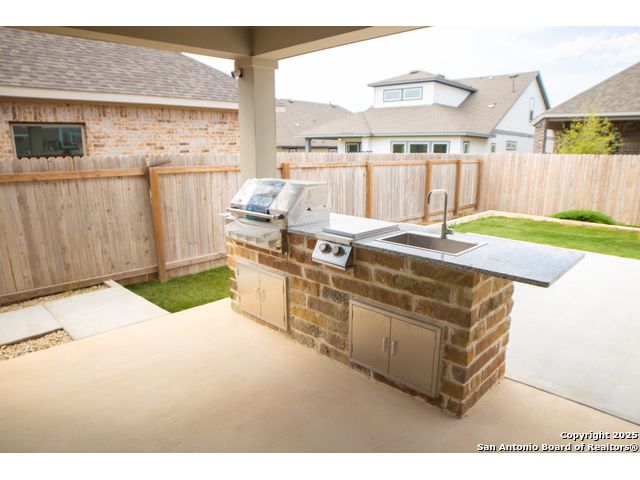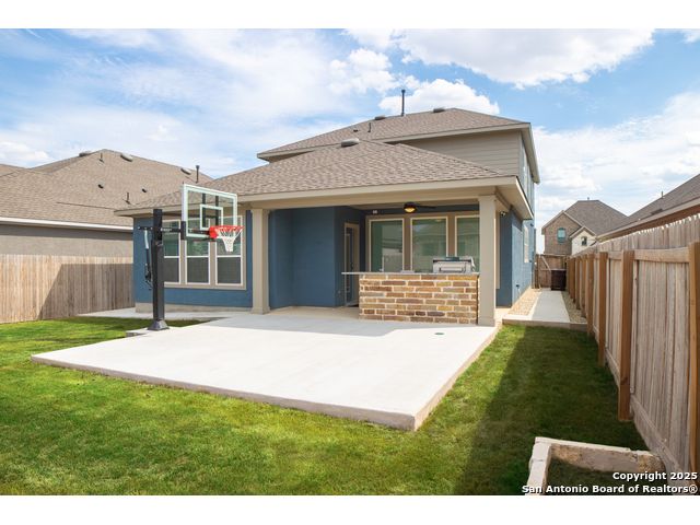 Don't miss your chance to own one of the last built Crockett floorplans in the highly sought-after Ladera Community! This beautifully crafted 4-bedroom, 3.5-bath home was built in 2024 and has been meticulously maintained, showcasing a variety of premium upgrades and designer selections throughout. Enjoy an open-concept layout featuring quartz and silestone countertops, stainless steel appliances, and cabinet hardware installed throughout, adding both function and style. Additional thoughtful touches include a built-in backpack rack and abundant storage options. Upstairs, you'll find a spacious loft, ample bedrooms, two full baths, offering a flexible living space. Step outside to your own private retreat, complete with an extended covered patio, built-in gas grill, and outdoor kitchen-perfect for entertaining. A newly added extended concrete walkway leads to the backyard, where a basketball court waits for endless outdoor fun. Home also includes a new water softener system. This is more than just a home-it's a lifestyle. This community offers jogging trails, bike trails, an Olympic size swimming pool, and playgrounds. Minutes from Lackland Airforce Base, shopping, and dining. Schedule your private tour today before this rare opportunity is gone!