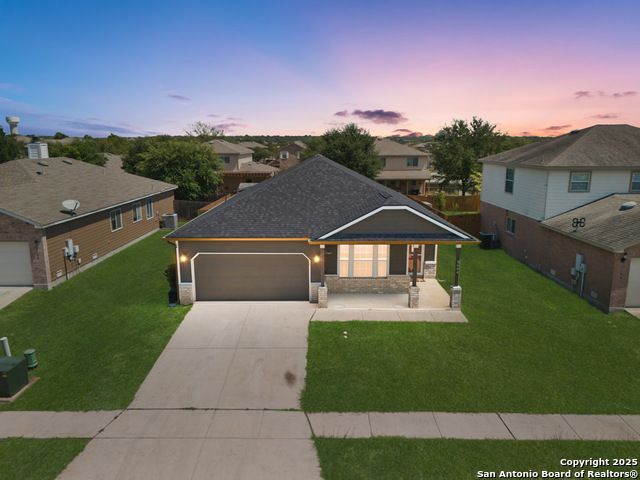 Charming 3-bed, 2-bath home on a quiet cul-de-sac near Olympia Hills Golf Course. Open-concept design with no carpet for easy maintenance and a modern feel. Spacious kitchen flows into living/dining areas, ideal for entertaining. Generous bedrooms offer flexible space. Backyard retreat features a covered patio with fans, brick patio for firepit/dining, plus storage shed. Conveniently located near I-35, shopping, and dining-this Selma gem is move-in ready!
