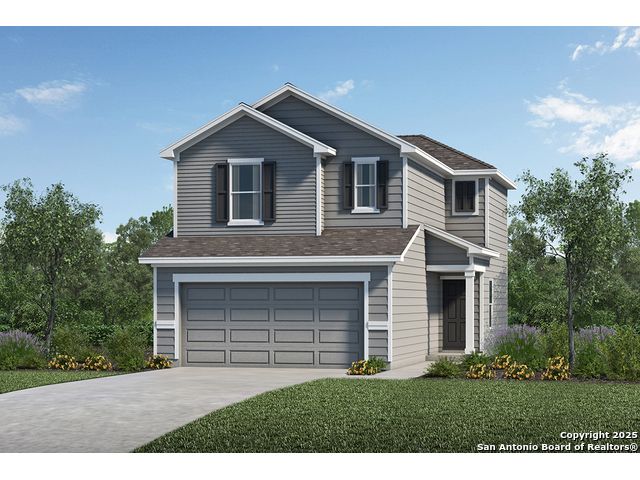 This inviting home features 9-ft. first floor ceilings for a spacious, airy feel. The kitchen is equipped with Whirlpool stainless steel appliances, Woodmont Dakota Shaker panel 42-in. upper cabinets, an extended breakfast bar, and granite countertops in Arctic Pearl. The primary bath offers upgraded cabinets, a dual vanity, and a 42-in. garden tub/shower with a Daltile tile surround. Decorative highlights include a Carrara-style entry door, Kwikset Polo knob interior hardware, Stone Theory ceramic tile flooring in the kitchen and great room, and vinyl plank flooring in the bathrooms. Additional features include a wireless security system, fully sodded yard, and an automatic sprinkler system.
