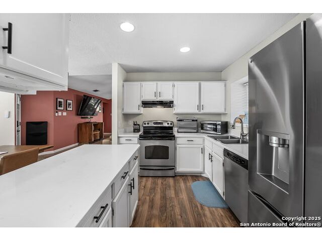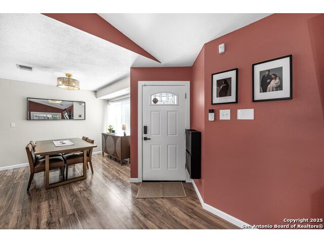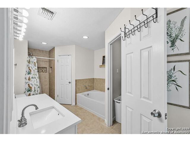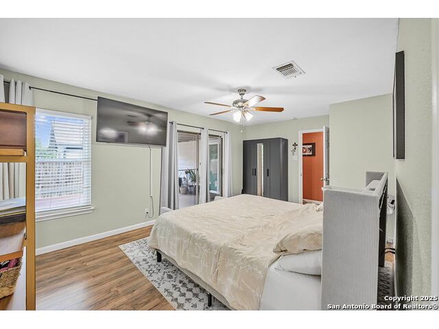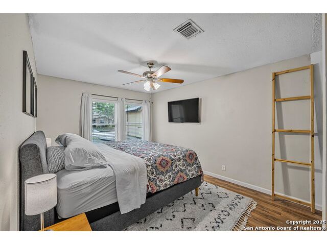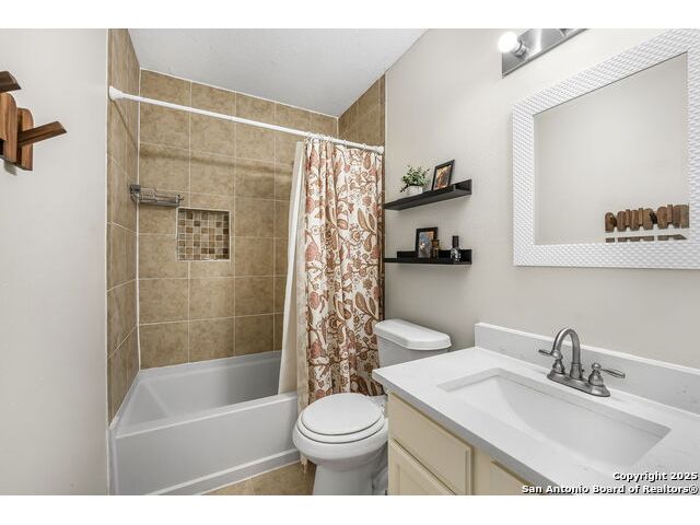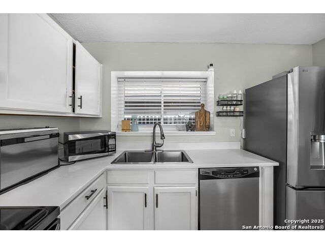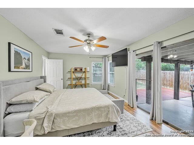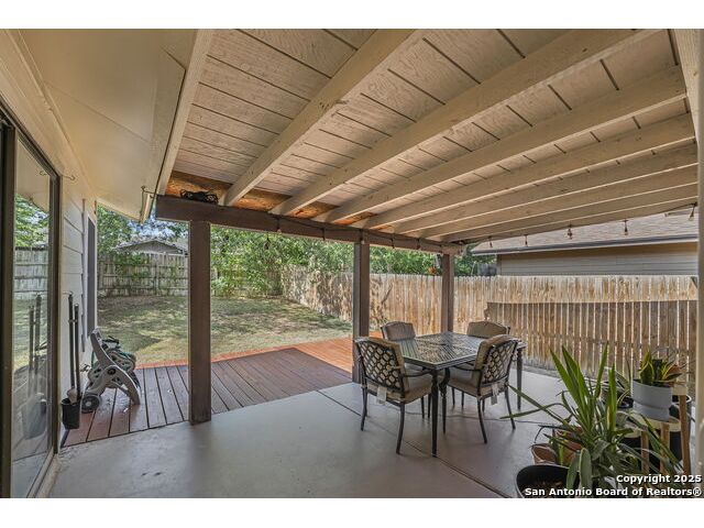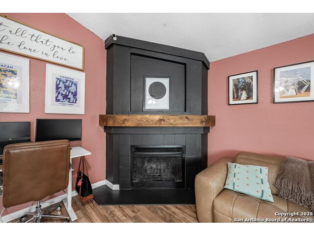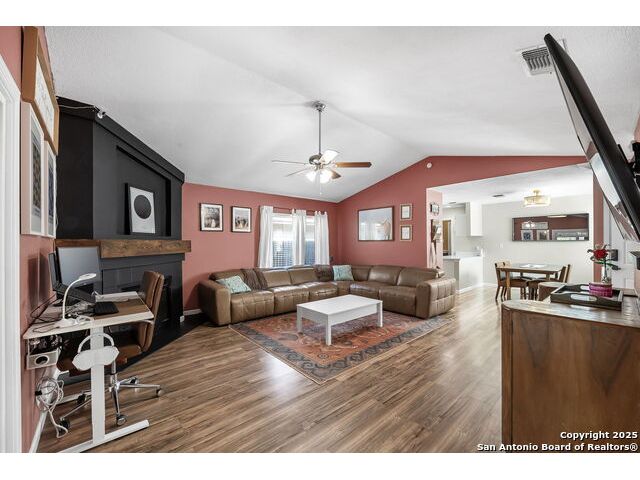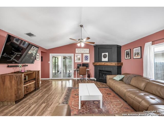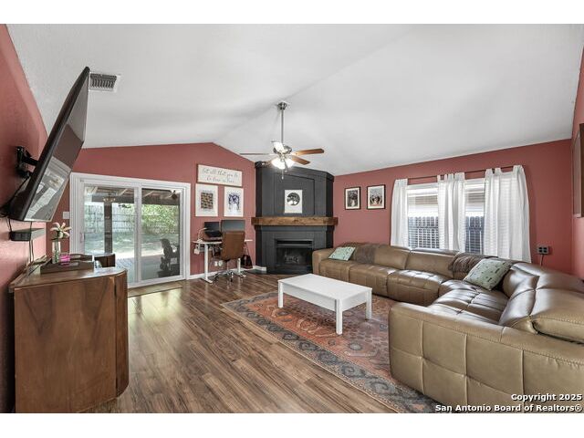 *FHA assumable loan available at 3.063% interest* (buyer must qualify). Welcome to a home that combines comfort, style, and everyday convenience. Recent updates include triple-pane windows that enhance energy efficiency and reduce noise, fresh interior paint that brings a bright, clean feel throughout. The living room is warm and inviting, with a cozy fireplace and an updated sliding glass door that opens to the backyard, creating a seamless indoor-outdoor connection filled with natural light. The kitchen is both stylish and functional, offering quartz countertops, stainless steel appliances, a walk-in pantry, and a newer garbage disposal, ideal for daily living and effortless entertaining. The spacious primary bedroom is a true retreat, complete with double closets and private access to the backyard. Step outside to a covered patio with a deck, leveled walkway, perfect for relaxing, dining, or hosting gatherings. Adding even more versatility, the finished shed is equipped with its own mini-split A/C, making it an ideal space for a studio, gym, or guest quarters. Situated just minutes from Fort Sam Houston and Randolph AFB, this thoughtfully enhanced home offers the perfect blend of comfort, functionality, and convenience in a location that fits your lifestyle.