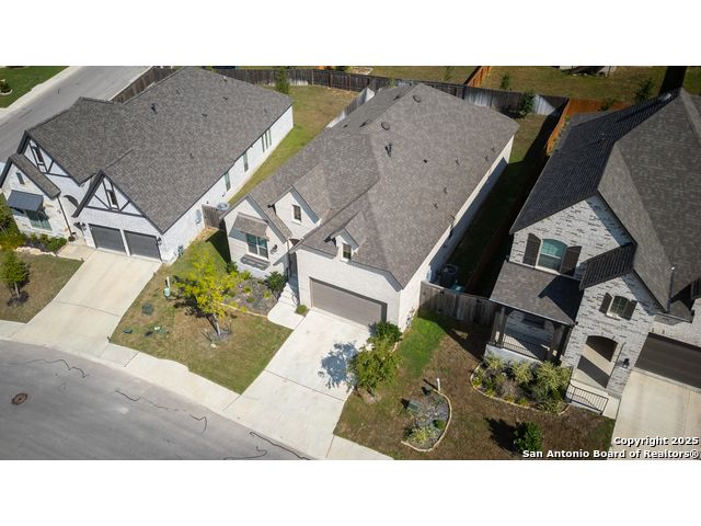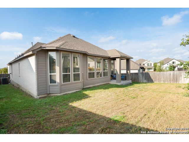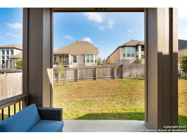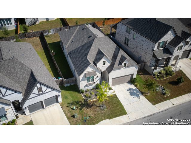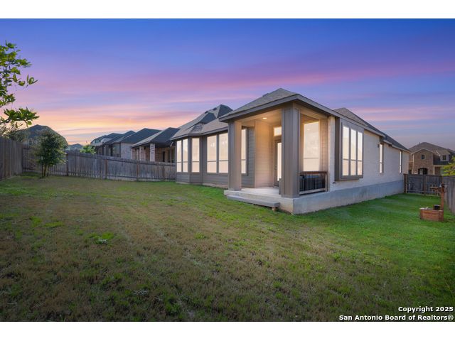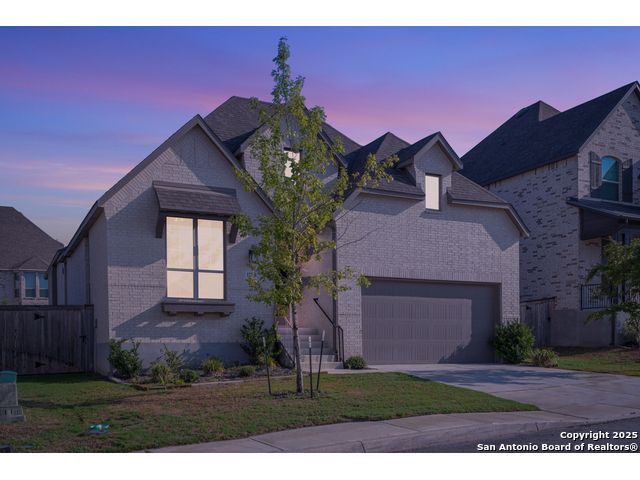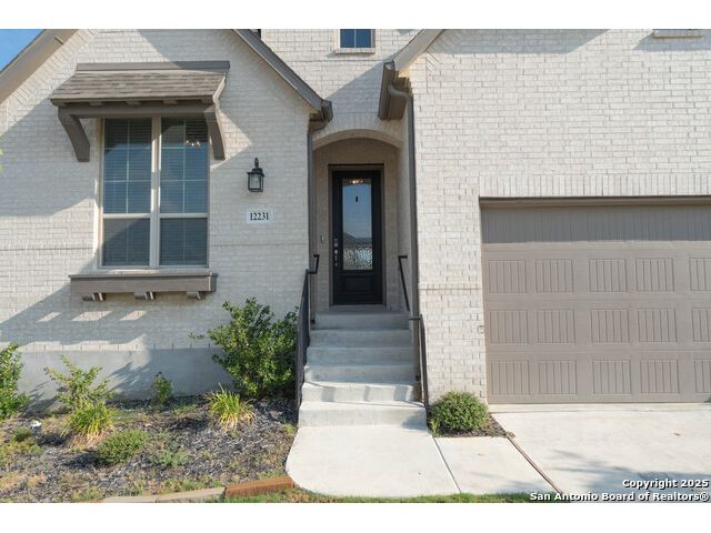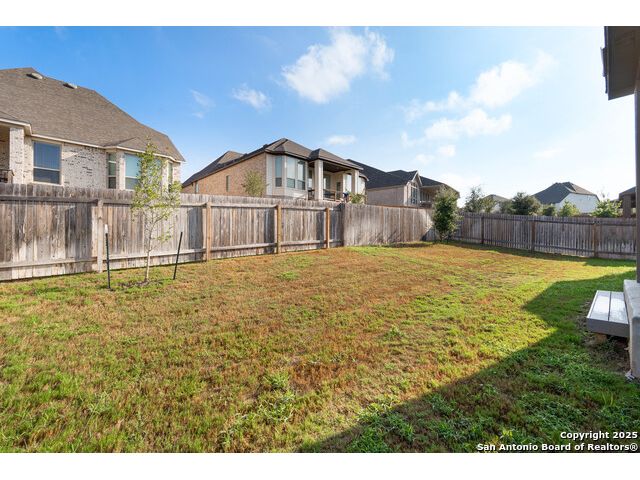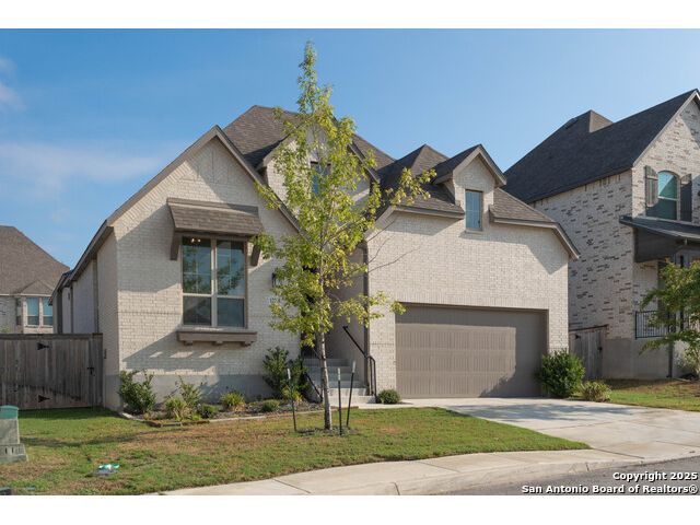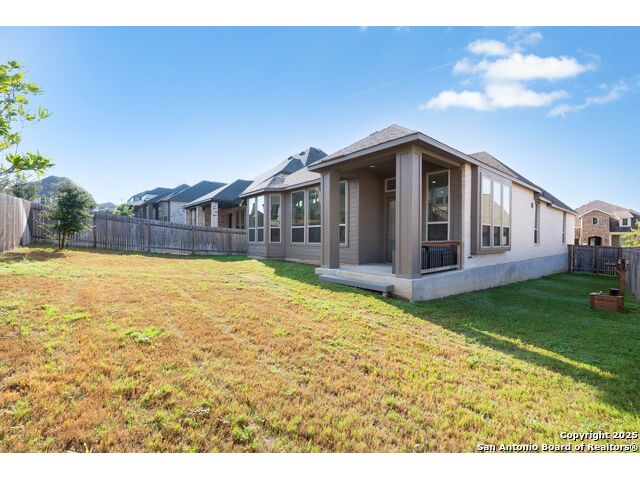 Welcome to this beautifully designed single-story home in the sought-after Weston Oaks community, where modern style meets everyday functionality. From the inviting brick exterior to the thoughtfully crafted interior, this home offers comfort and elegance at every turn. Step into an open floor plan filled with natural light, featuring a spacious living room with large windows overlooking the backyard. The front flex room adds versatility and can easily serve as a private office, study, or media room. The gourmet kitchen is a true centerpiece, complete with an oversized island, sleek counters, stainless steel appliances, and abundant cabinetry-perfect for both entertaining and casual family meals. The private primary suite boasts a bay window, generous walk-in closet, and spa-like bath with dual vanities and a large walk-in shower. Secondary bedrooms provide versatility for guests, family, or hobbies. Outdoors, enjoy a covered patio that flows into a sizable backyard, ideal for summer barbecues, kids' play, or simply relaxing under the Texas sky. Located near major highways, Lackland AFB, and shopping, this home delivers the best of convenience and community living.
