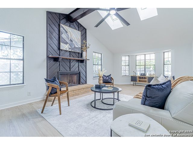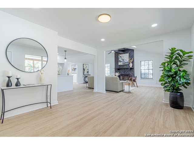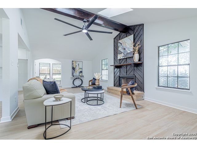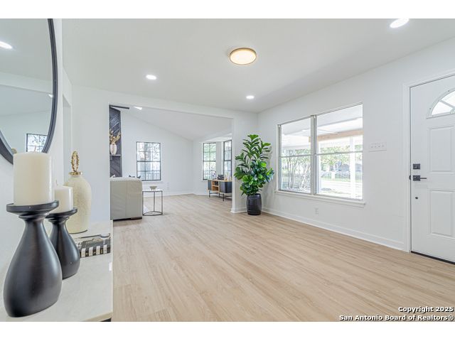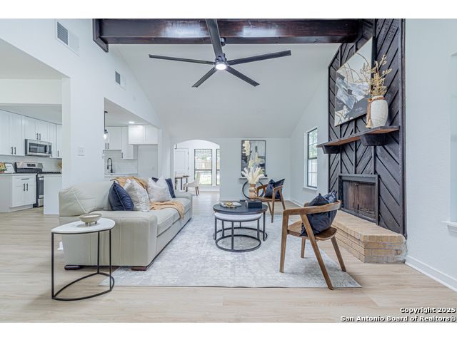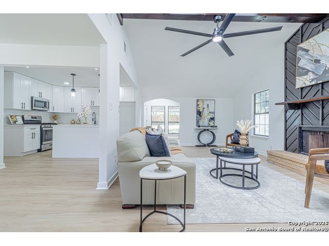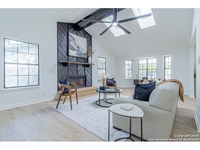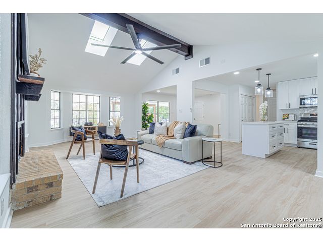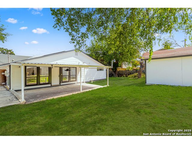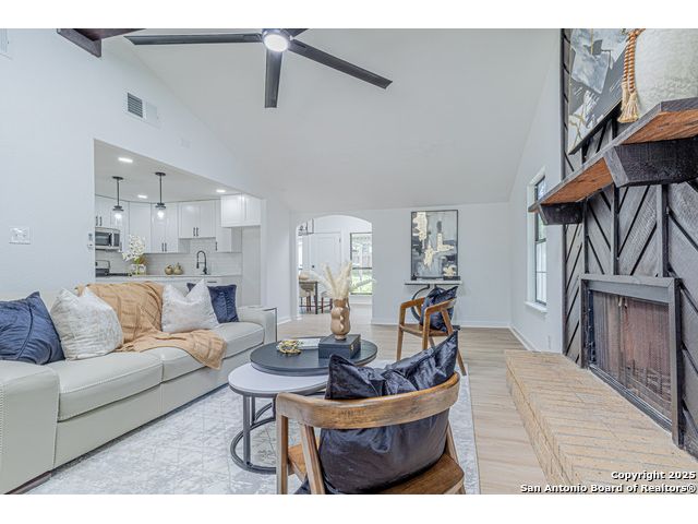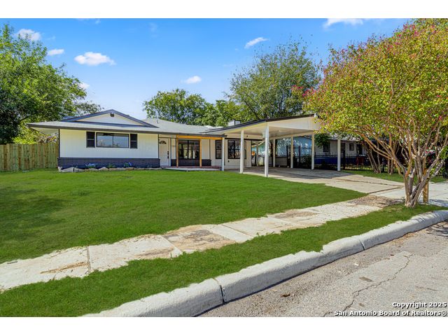 Welcome to this beautifully maintained 3-bedroom, 2-bath home offering 1,740 sq ft of comfortable living space in the desirable Lackland Terrace neighborhood. This bright and open floor plan features wood laminate flooring throughout and a cozy fireplace that adds warmth and character to the spacious living area. The updated kitchen boasts modern finishes, ample cabinet space, and is perfect for both everyday living and entertaining. The primary suite includes a private bath, while two additional bedrooms offer flexibility for family, guests, or a home office. Enjoy the convenience of a covered carport, solar panels and a low-maintenance yard, perfect for outdoor relaxation. Ideally located near shopping, schools, parks, and Lackland AFB, this move-in ready home combines comfort, style, and value. Don't miss your opportunity to own this gem in a well-established neighborhood-schedule your showing today!