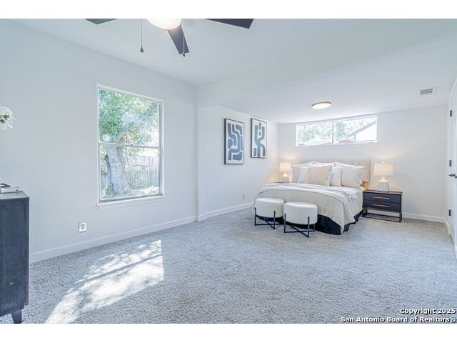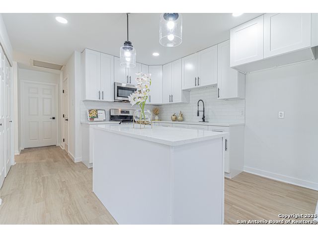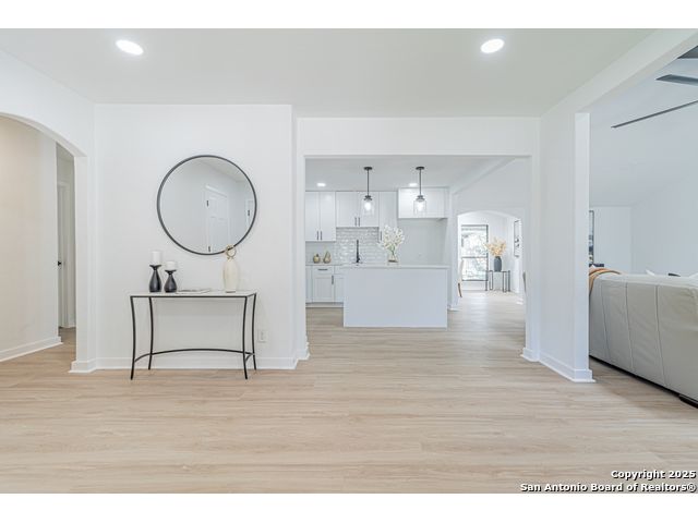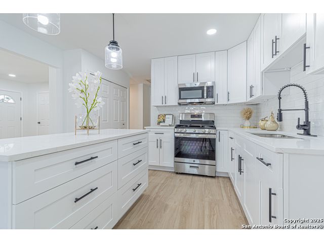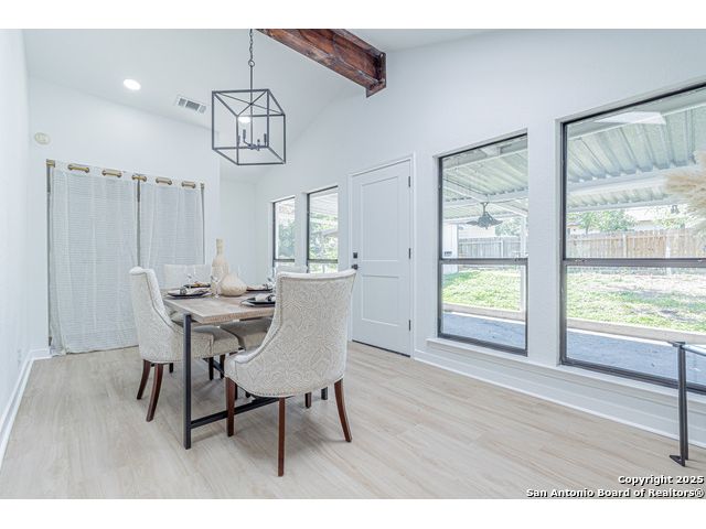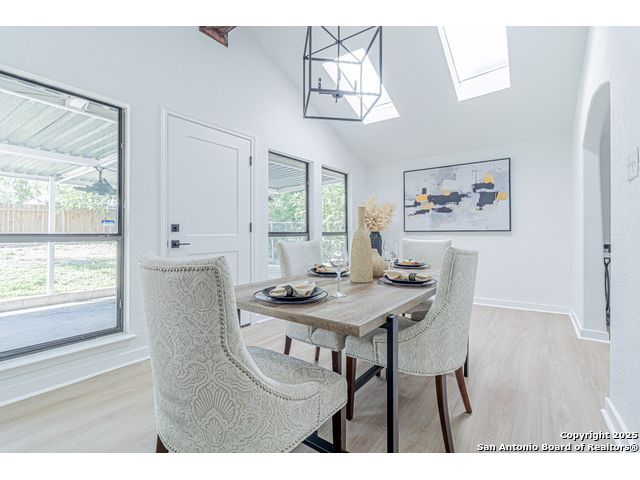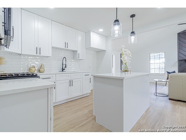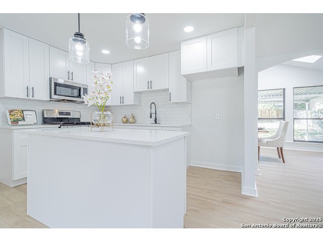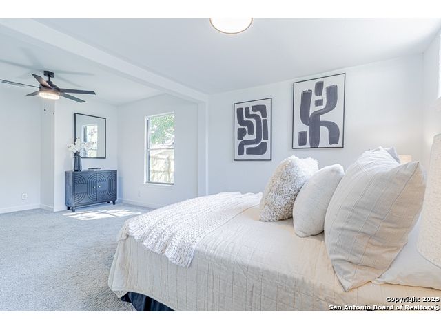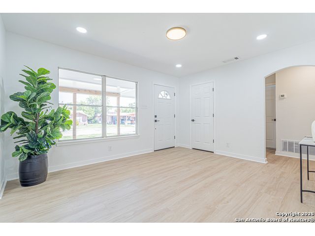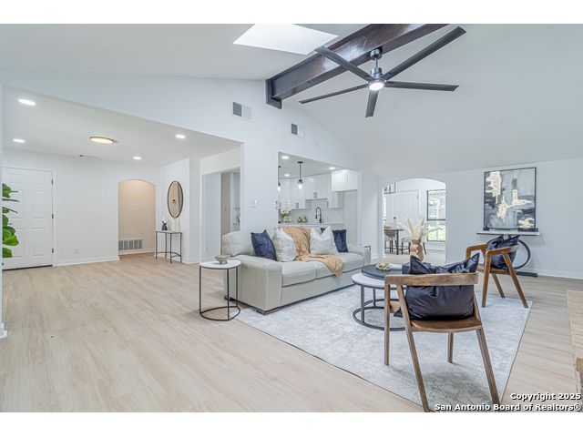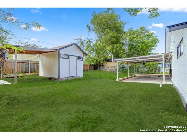 Welcome to this beautifully maintained 3-bedroom, 2-bath home offering 1,740 sq ft of comfortable living space in the desirable Lackland Terrace neighborhood. This bright and open floor plan features wood laminate flooring throughout and a cozy fireplace that adds warmth and character to the spacious living area. The updated kitchen boasts modern finishes, ample cabinet space, and is perfect for both everyday living and entertaining. The primary suite includes a private bath, while two additional bedrooms offer flexibility for family, guests, or a home office. Enjoy the convenience of a covered carport, solar panels and a low-maintenance yard, perfect for outdoor relaxation. Ideally located near shopping, schools, parks, and Lackland AFB, this move-in ready home combines comfort, style, and value. Don't miss your opportunity to own this gem in a well-established neighborhood-schedule your showing today!