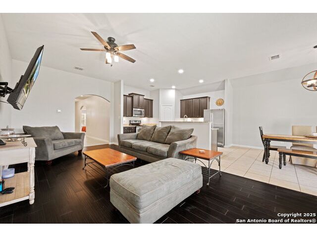 This beautifully designed 4-bedroom, 2-bathroom home offers the perfect blend of style, comfort, and convenience. Located near top-rated schools in a welcoming neighborhood, it's ideal for families seeking room to grow. The bright and open floorplan features a large dining area and an upgraded kitchen with granite countertops, stainless steel appliances, and abundant storage. The primary suite is thoughtfully separated from the secondary bedrooms, offering a true retreat with a luxurious bathroom boasting a soaking tub, separate shower, dual vanities, and a huge walk-in closet. Step outside to enjoy a spacious backyard with a covered patio, perfect for barbecues, playtime, or simply relaxing in the shade. A two-car garage and single-story layout add everyday convenience. Don't miss this chance to own a home that combines family-friendly living with modern upgrades - move-in ready and waiting for you!