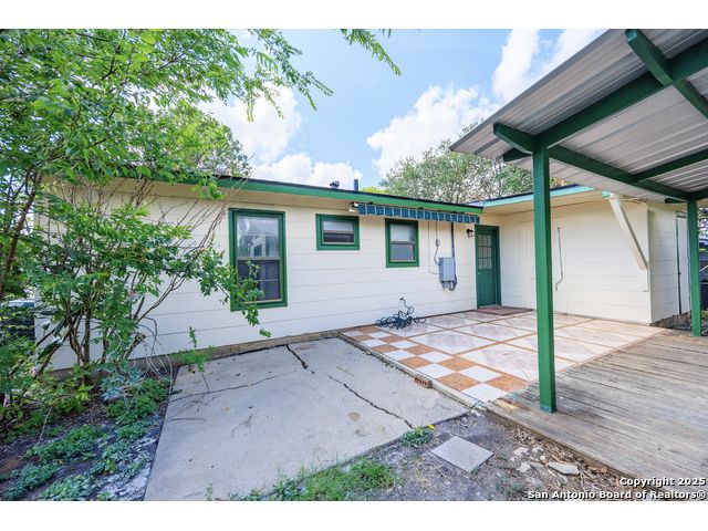 THIS CHARMING, QUAINT 3 BEDROOM 1 BATH CORNER HOME WAS JUST RENOVATED WITH FULL INTERIOR AND EXTERIOR PAINT, ALL NEW CARPET IN BEDROOMS, BRAND NEW ROOF AND ALL NEW HVAC DUCTS. DETACHED GARAGE IN BACK WITH ACCESS FROM STREET WITH A COVERED PATIO AND LARGE EXTRA TALL TWO CAR PORT. LOCATED CLOSE TO JBSA-LACKLAND, SHOPPING, RESTAURANTS AND MAJOR HIGHWAYS.
