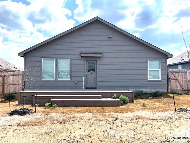 Move-in ready and never lived in! This beautiful 4-bed, 2-bath, 1,668 sq. ft. home in Jourdanton offers the feel of a brand-new build with thoughtful upgrades already in place. Enjoy a bright, open one-story layout with gas cooking and a spacious living area. Owner upgrades include an alarm system, custom blinds, ceiling fans in the living room, primary suite, and a secondary bedroom, plus a garage door opener for convenience. Step outside to a large backyard deck and privacy fencing, perfect for entertaining or relaxing. A transferable builder warranty provides added peace of mind. A rare opportunity to own a like-new home with extras already done-just bring your furniture and start living!