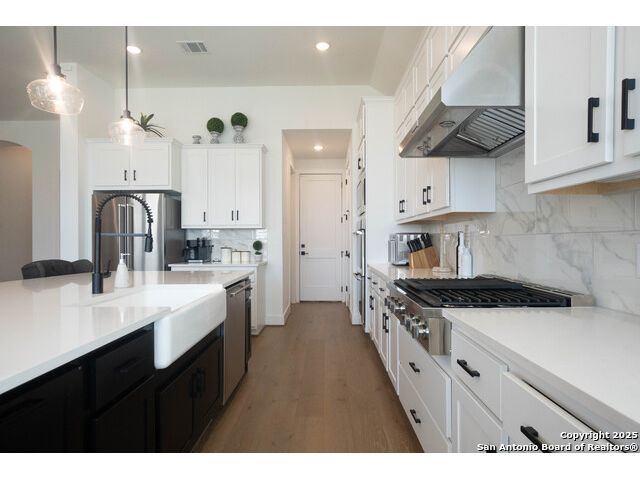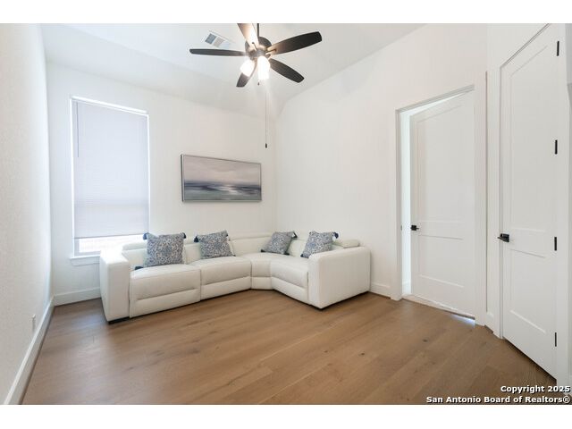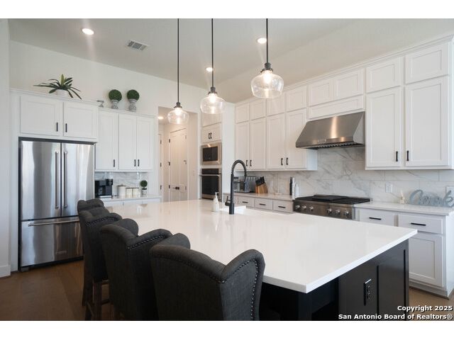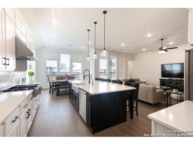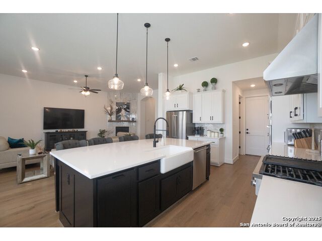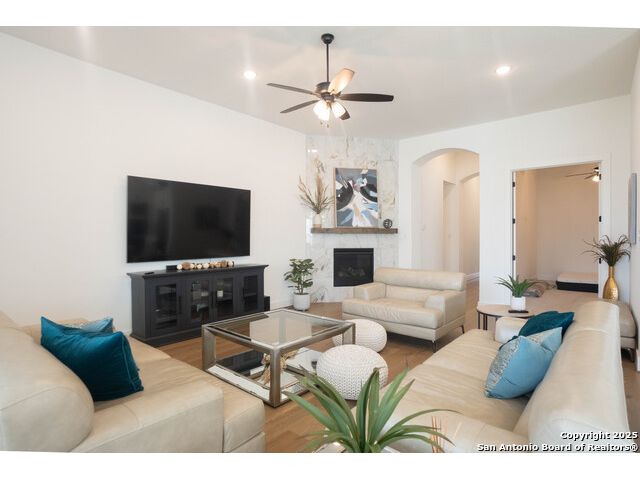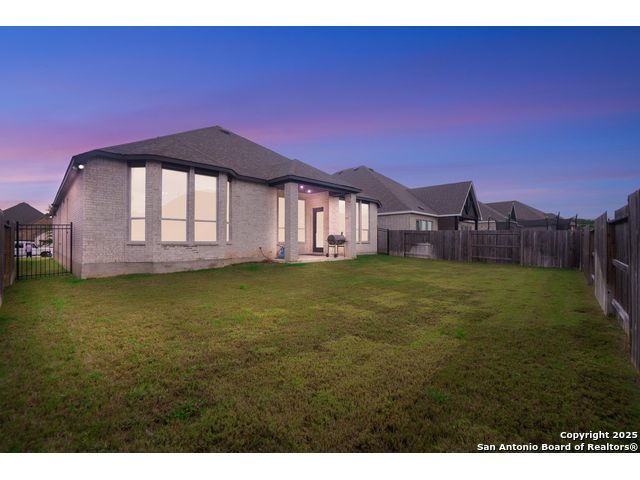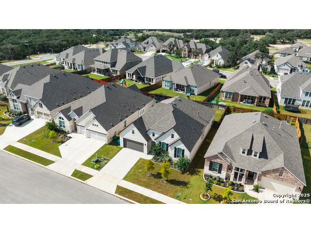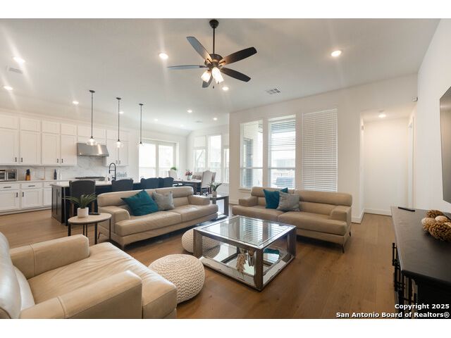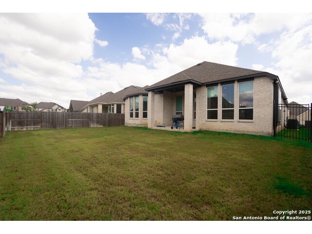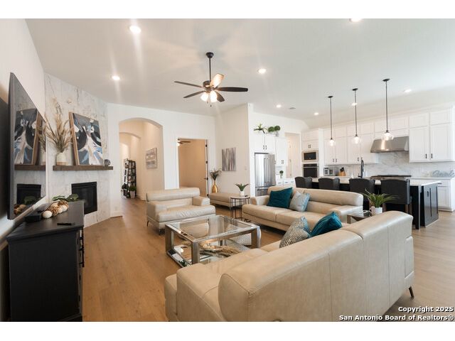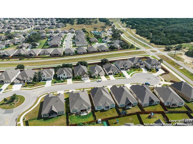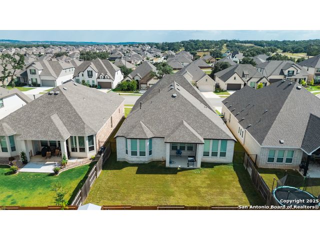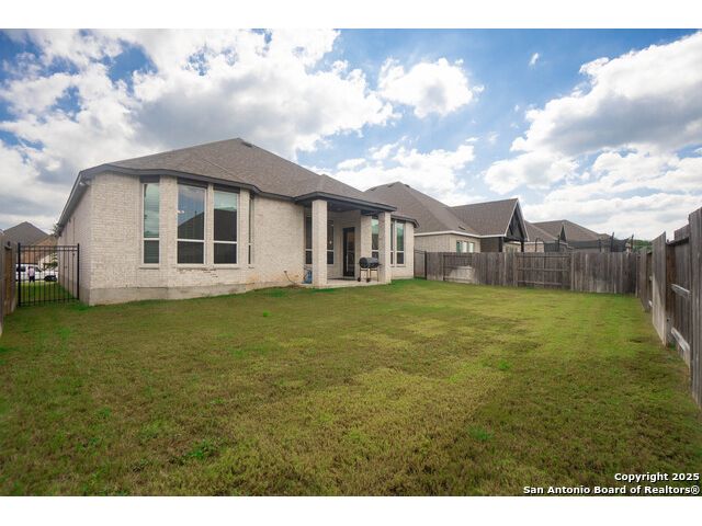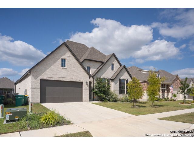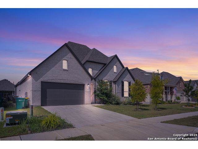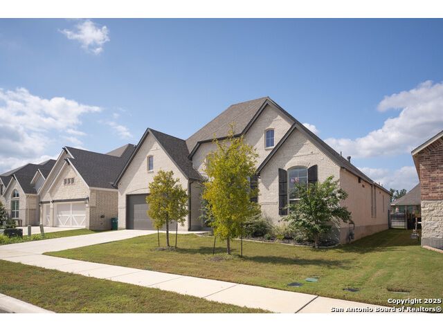 Welcome to this stunning home in the highly sought-after community of Boerne, where modern elegance meets everyday comfort. From the stone facade and inviting curb appeal to the open-concept layout inside, every detail of this residence is designed to impress. Step into a bright study with French doors, perfect for working from home, and continue into the expansive living room featuring a striking fireplace, high ceilings, and abundant natural light. The gourmet kitchen is a showstopper with custom cabinetry, a massive island with breakfast bar seating, stainless steel appliances, and a sleek gas cooktop-ideal for entertaining and family gatherings. A spacious second living area adds even more versatility, offering the perfect spot for a game room, media space, or kids' retreat. Retreat to the luxurious primary suite, complete with bay windows, a spa-like bath with soaking tub, oversized shower, and a generous walk-in closet. Secondary bedrooms are well-appointed, offering comfort and privacy for guests or family. Outdoors, enjoy a large fenced yard and covered patio, perfect for relaxing evenings or weekend BBQs. With its ideal location near top-rated schools, shopping, and dining, this home truly offers the best of Boerne living.