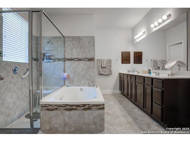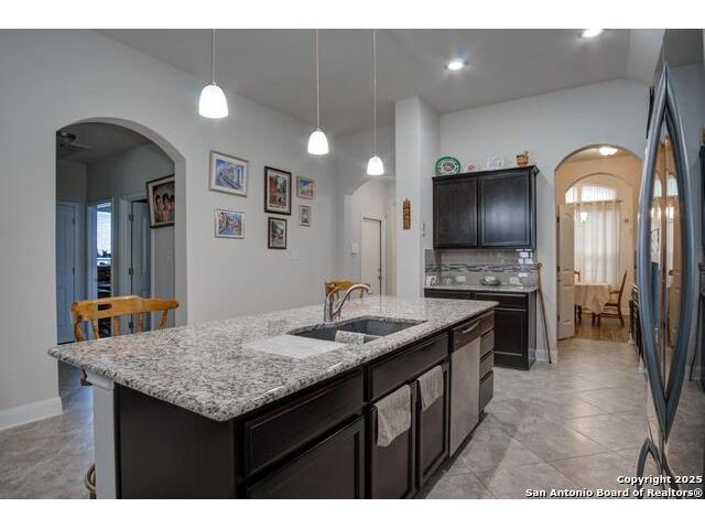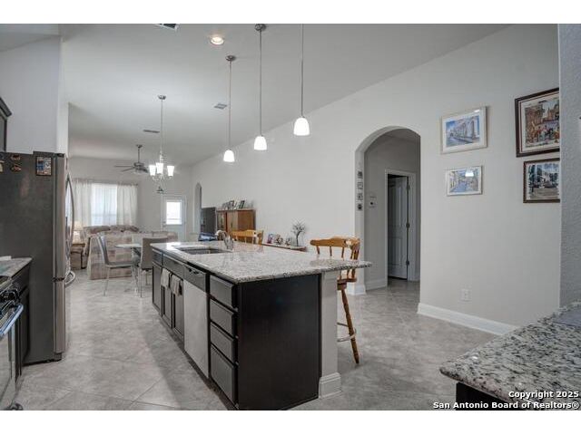 Imagine living in a sought after yet tucked-away neighborhood in a modern, immaculately maintained home with high ceilings, open floor plan, tons of natural lighting, and spacious rooms with a kitchen that includes a huge island, granite counter tops, a charming window seat, coffee bar, butler's pantry, and a large grocery pantry. Also dream of a structurally sound and updated home with an upgraded high-end roof, updated AC unit, storm doors, a top-of-the-line shed, and irrigation system, tile and luxury vinyl flooring throughout - AND, neighborhood amenities including a pool, club house, sports courts, play ground, and jogging trails. Imagine no more! Move into this is a meticulously maintained and upgraded home tucked away in Alamo Ranch close to a variety of restaurants & shopping malls, entertainment resorts nearby including Sea World and golf courses and hotel resorts, top-notch schools, thriving businesses, major hospitals, and Lackland Air Force Base.