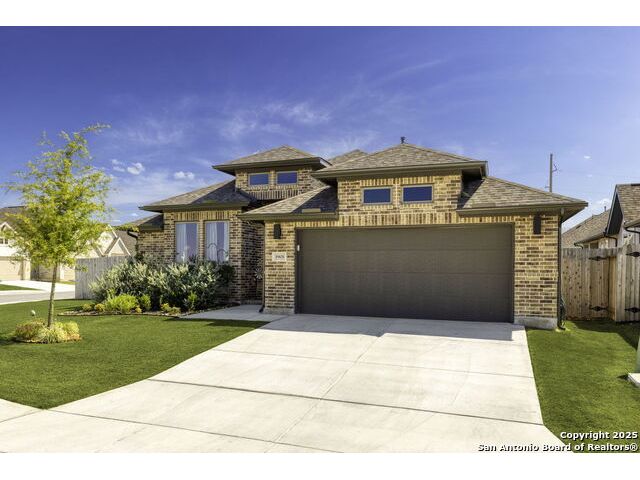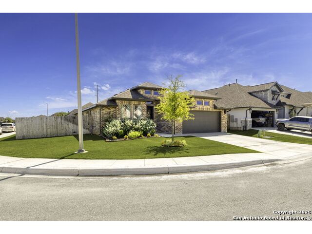 Welcome home to this stunning 3-bedroom, 2-bath home on an oversized corner lot with the inside featuring an open layout with a dedicated office and game room, both with welcoming French doors. The island kitchen flows into the dining and living areas, creating a perfect space for entertaining. The primary suite includes a double vanity, walk-in shower, and separate soaking tub. Secondary bedrooms are generously sized with ample closet space. Additional highlights include a utility room, mudroom, and attached 2-car garage. Located in the highly desirable Navarro ISD!