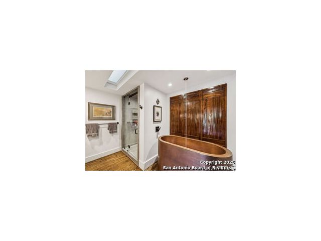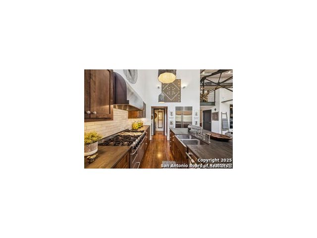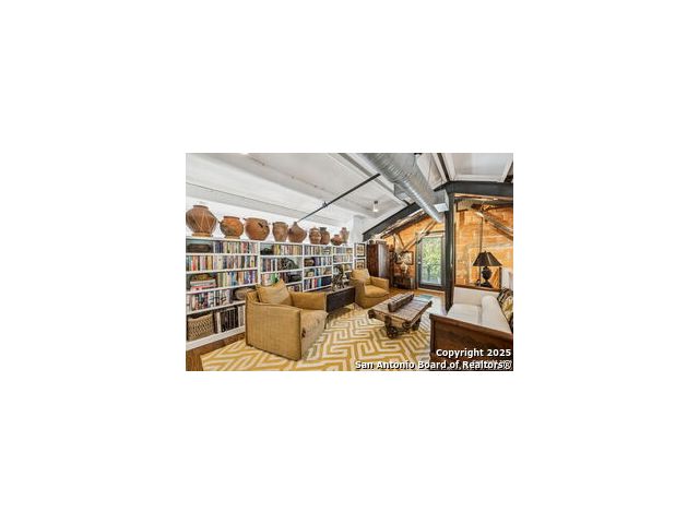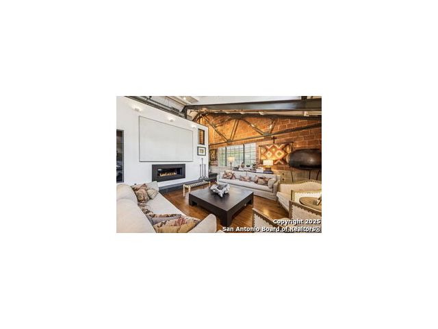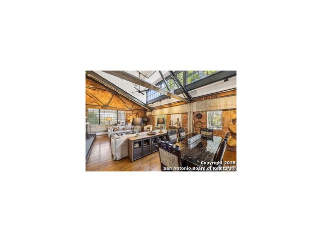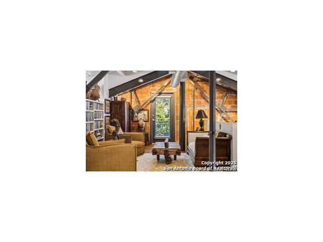 An extraordinary residence within the oldest historic neighborhood in Texas - San Antonio's King William Historic District, this 4,014-square-foot loft unfolds across three levels. Steel beams and exposed brick form the backdrop for interiors that move fluidly between grand gathering spaces and more intimate alcoves, punctuated by multiple patios and balconies that extend the living experience outward. The floor plan offers four distinct living areas, each with its own atmosphere: from a soaring double-height living room edged in industrial windows to fireside seating arranged with sculptural precision. The kitchen takes its place as a functional and aesthetic centerpiece, finished in warm wood cabinetry, professional-grade appliances with gas cooking and dekton countertops Two private bedroom suites anchor the plan, complemented by additional flexible sleeping areas and four full baths. The primary suite is a dramatic gesture in wood and steel, crowned by a custom canopy bed beneath vaulted trusses, with a Japanese copper soaking tub fed by a ceiling-mounted faucet creating a striking focal point in the bath. A curated environment that is part gallery and part sanctuary, this residence offers the scale and function of a house within San Antonio's most storied district and stands as one of its rarest offerings. 4,014 sq ft 2 bedroom suites (with 1-2 additional sleeping areas) 4 full baths 4 living areas 3-levels 4 patio/balconies
