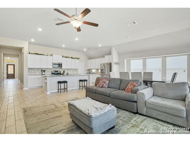 This lovely one-story 4 bedroom 3 bathroom home greets you with an elegant long foyer. To your right as you walk in, you'll find two secondary bedrooms with a secondary bathroom. To your left is another secondary bedroom with its own bath. Continuing into the home, you'll find a relaxing retreat, perfect for a study or even a playroom. The home has a large family room that opens to a spacious kitchen and dining nook. The master bedroom lies beyond the family room and features its own private master bath with enlarged shower!