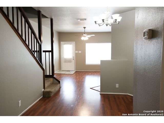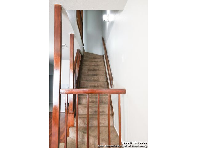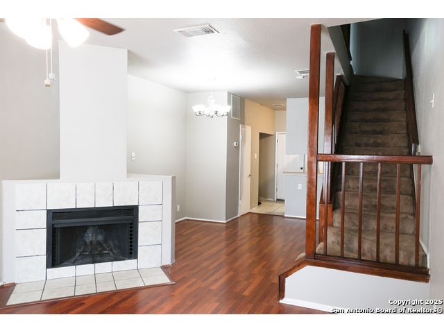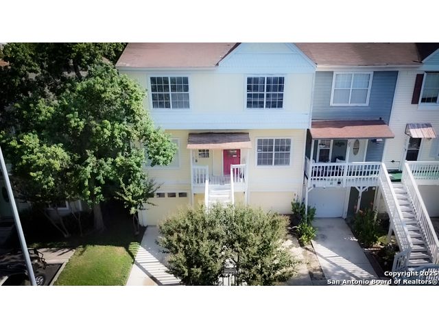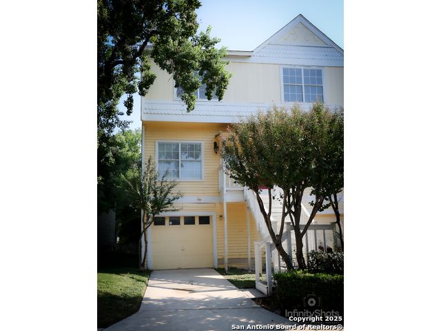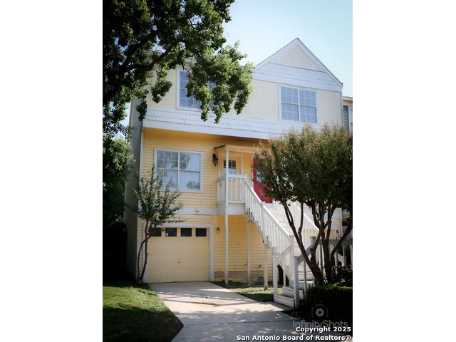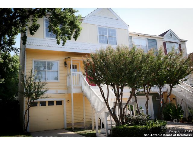 This townhome is located in a well established neighborhood with mature trees that has convenient accessibility to many different amenities. It is within minutes to the San Antonio International Airport, 1.1 miles to McAllister Park, minutes access to a wide variety of shopping centers and restaurants, 0.7 miles to the NE SAPD substation, access to clubhouse, swimming pool, and minutes to several major hospitals. This three level townhome features 3 bedrooms, 3.5 baths, living room, dining room, kitchen, kitchen nook, one car garage, and one car private driveway directly in front of the townhome. Interior entry can be accessed by both the Garage entry on level one and main entry door on level two. On level one, there is direct access to the one car garage which includes washer/dryer connection, one bedroom, full bathroom, patio access with privacy fence. It can be used as a potential primary bedroom, guest room, mother-in-law suite, home gym, etc. On the main level two, enjoy an open floor plan that includes a living room, fireplace, dining room, half bath, kitchen, kitchen nook, and an outside deck sitting area. On level three, the primary bedroom includes a full bathroom along with a walk-in closet and a secondary closet. Bedroom two includes a dual door closet and full bathroom with closet. Please verify and measure room sizes. This is a Go and Show through ShowingTime. $2000 in sellers concessions.