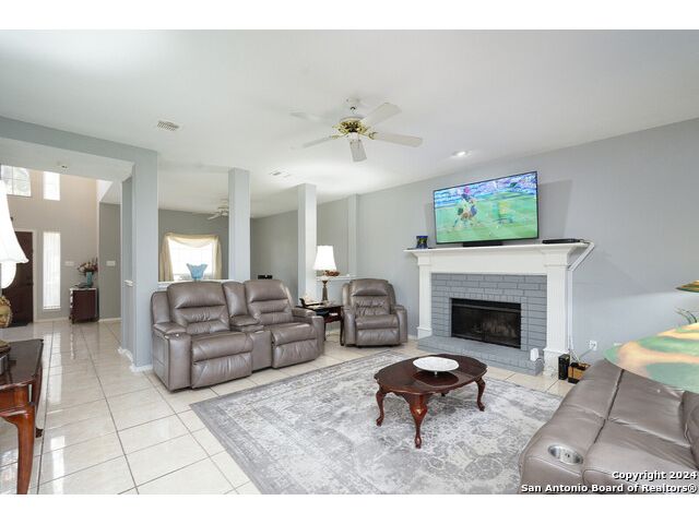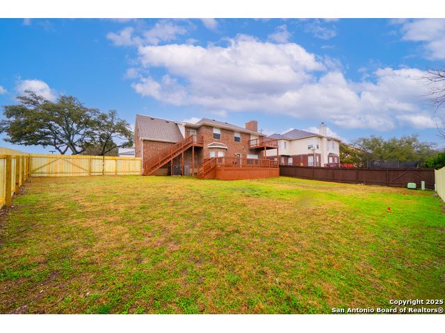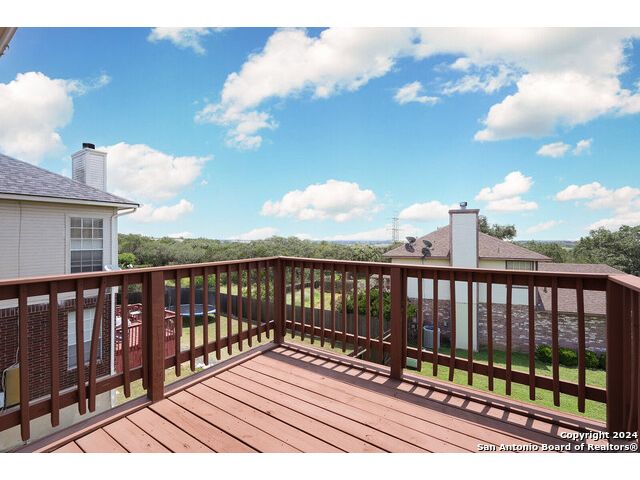 **Open House- Sunday October 19th from 1-4pm!!** This stunning 5-bedroom residence features 4-sides brick construction and a grand entryway highlighted by a show-stopping spiral staircase and elegant marble flooring throughout the entire first floor. The chef's kitchen shines with sleek white cabinetry, a central prep island with extra storage, and built-in appliances that make cooking a breeze. Multiple living and dining areas on the first floor create the perfect setting for hosting family gatherings, holidays, or Sunday dinners. Upstairs, the primary suite is a true retreat with double vanities, a separate tub and shower, and a spacious walk-in closet. Step out onto your private balcony to take in sweeping Hill Country views-ideal for morning coffee or evening sunsets. An oversized secondary bedroom with a private entrance offers flexibility for multi-generational living, an adult child, or long-term guests. In total, there are 5 bedrooms and 2 bathrooms upstairs. Recent updates make this home move-in ready: Brand new fence and carpeting (Jan. 2025), Water heater (6 years old), and both HVAC systems replaced in the last 4 years. With its elegant design, versatile layout, and thoughtful updates, this home is ready for its next chapter. Schedule your showing today and experience all that the Hills of Stone Oak has to offer!