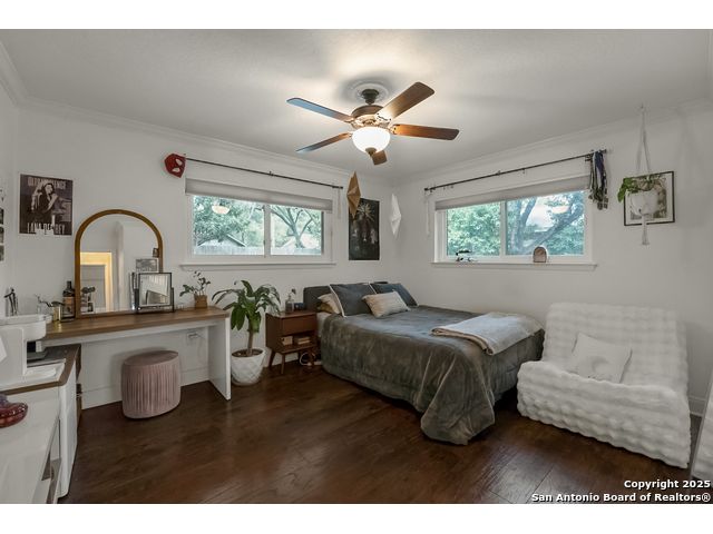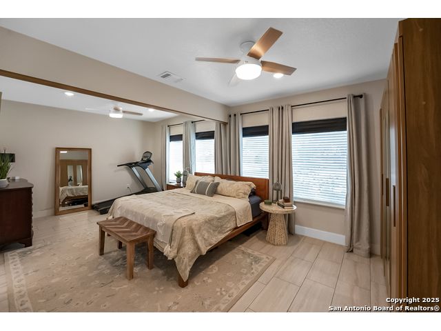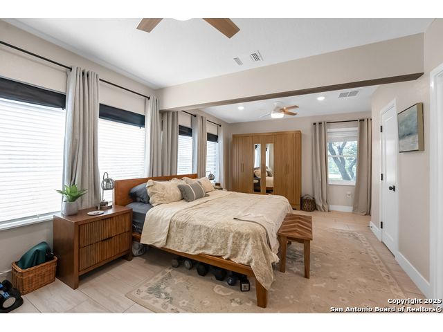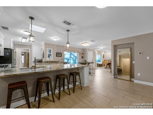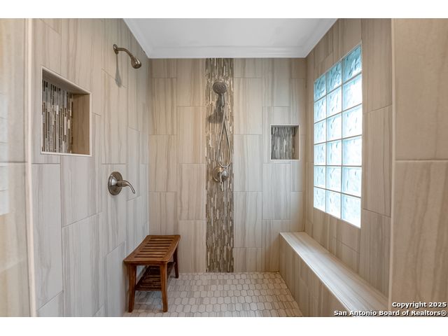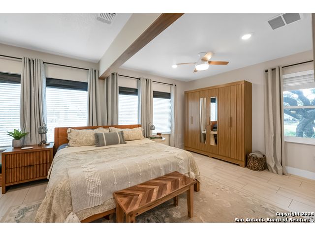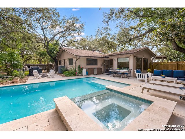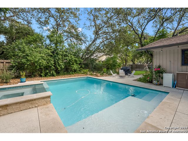 Welcome to 525 Fleetwood Drive, a stunning fully renovated luxury residence in the heart of Hollywood Park. This 4 bedroom, 3 bath masterpiece offers 2,618 square feet of refined living space on a generous .40 acre corner lot, where every detail has been carefully crafted with comfort, elegance, and functionality in mind. Step inside to find an open and inviting floor plan highlighted by spacious living and dining areas, complemented by custom finishes and designer touches throughout. The gourmet kitchen and expansive gathering spaces flow seamlessly, making this home ideal for both entertaining and everyday living. The private owner's suite is a true retreat. Indulge in a spa level experience with the stunning shower, framed in seamless glass for a sleek, modern edge. Walls dressed in designer tile extend to the ceiling, elevating both height and sophistication. Dual shower heads provide a lavish, customizable experience, while a built in niche blends function with refined style. Indulge in spa level relaxation with the freestanding soaking tub, a true centerpiece of the primary bath. Its sleek, sculptural design offers timeless elegance while inviting long, restorative soaks. Perfectly positioned to create a serene retreat, it balances modern luxury with everyday comfort-transforming the bath into your own private sanctuary. Custom vanity and premium fixtures complete this exceptional space. Experience a life of convenience and luxury in the beautiful neighborhood of Hollywood Park. This home also boasts a spacious secondary primary suite with a spa-like en-suite bath and not one, but two walk-in closets, providing a tranquil retreat with abundant storage. Outdoors, the resort style saltwater pool with spa, heater, and cooler creates the ultimate year round oasis. Beautifully landscaped grounds and a refurbished pond add charm and tranquility, making the backyard a perfect escape. This home also features extensive upgrades that ensure efficiency and peace of mind, including a new roof tune-up, updated A/C and duct work, upgraded insulation, new windows and doors, a water softener system, and a refreshed gas fireplace. Even the details, such as custom window treatments and gutters, have been perfected. Nestled in a serene and friendly community, you'll enjoy easy access to major thoroughfares like 1604 and 281, making commuting and exploring San Antonio a breeze. Sparing no expense, this residence represents the very best of luxury living in a sought after neighborhood-offering the perfect balance of peaceful living with city convenience.