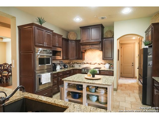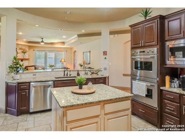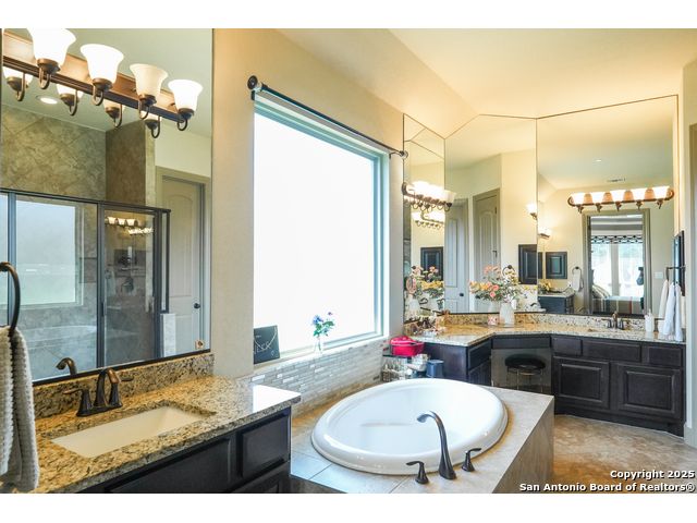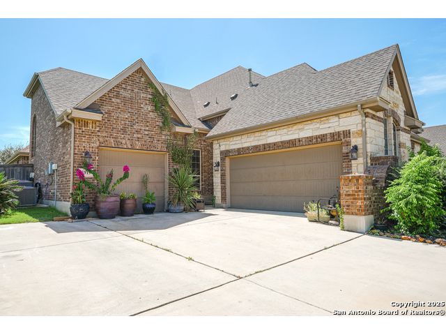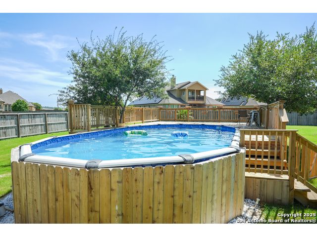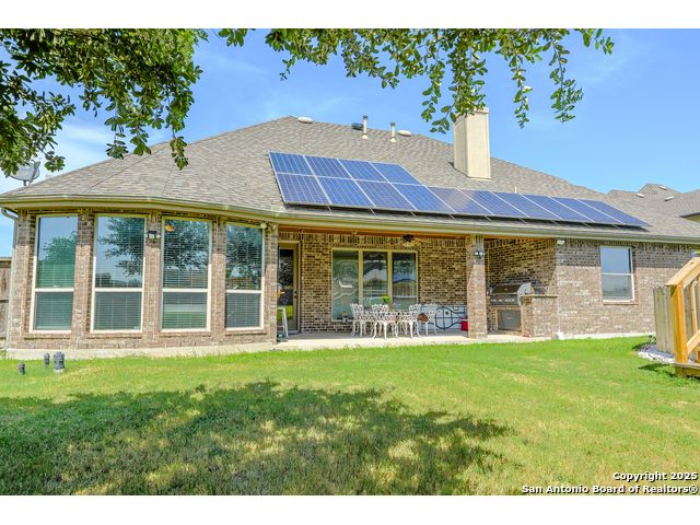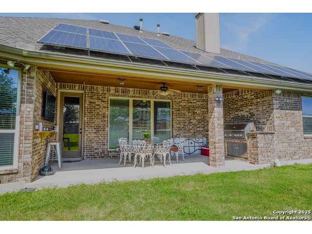 4 Bedrooms, 3 1/2 Baths in beautiful Quiet Creek Community just south of Randolph AFB. Exceptional opportunity for a beautiful home on a spacious lot. Community is conveniently located close to Randolph AFB with quick access to Loop 1604 and IH-10 and I-35. Great floor plan lives as a One Story with Bonus Room (Game Room or Media) with Half Bath Up. This home was just built in 2013 and has been meticulously cared for. Large half acre lot with mature Landscaping and fully fenced Rear Yard. Outstanding curb appeal with this Stone and Brick home, professionally landscaped featuring a Circular Driveway for Additional Parking. This home has many beautiful Design Features and exceptional Finishes including gorgeous Cabinetry and high-end Appliances. Home features a large Covered Porch with Outdoor Kitchen. Solar Panels are included to enjoy the benefits of lower Utility costs. Above ground with beautiful deck installed 2024. Paid off solar panels. All furniture is negotiable.