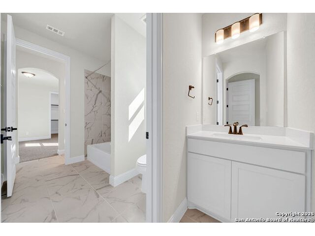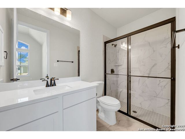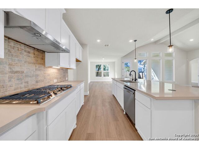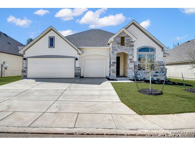 Introducing the Gardner Plan - Single-Story Elegance and Modern Luxury Step into the Gardner Plan, a beautifully designed single-story home that redefines luxury and functionality. This exceptional residence features 4 spacious bedrooms, including a master suite retreat that offers unmatched comfort and style. Primary Bathroom: Indulge in our signature Spa Luxury Shower and enjoy the convenience of an oversized walk-in closet. Guest Suite: Bedroom 2 boasts a private en-suite bath with a walk-in shower, perfect for visitors. Jack-and-Jill Design: Bedrooms 3 and 4 share a thoughtfully designed bathroom, with private vanities for added privacy. The open floor plan is ideal for both entertaining and daily living, with 8' interior doors adding a touch of grandeur throughout. The gourmet kitchen is a chef's dream, featuring built-in appliances, a gas cooktop, and elegant finishes that make cooking a pleasure. This home is currently under construction, with an estimated completion date of March 2025. Don't miss the opportunity to own this exceptional home that perfectly blends luxury, practicality, and timeless design. Enjoy a FREE complimentary one-year membership to Fair Oaks Ranch Golf & Country Club with your purchase! Sizes and details are approximate; please confirm with the sales team. Last 4 homes available in the community. Home is under construction! "Please note: Photos shown are model renderings and not of the actual home. Estimated completion is coming soon."