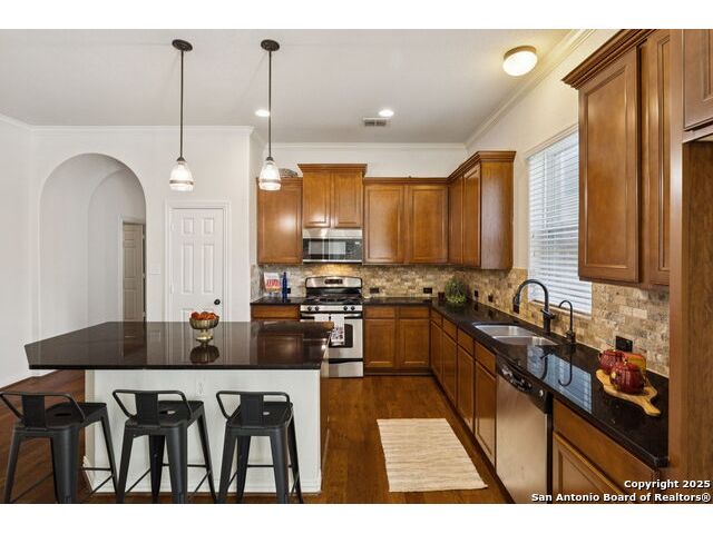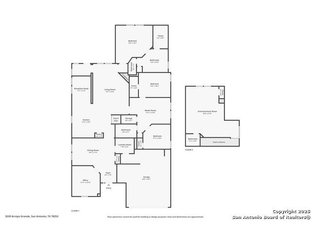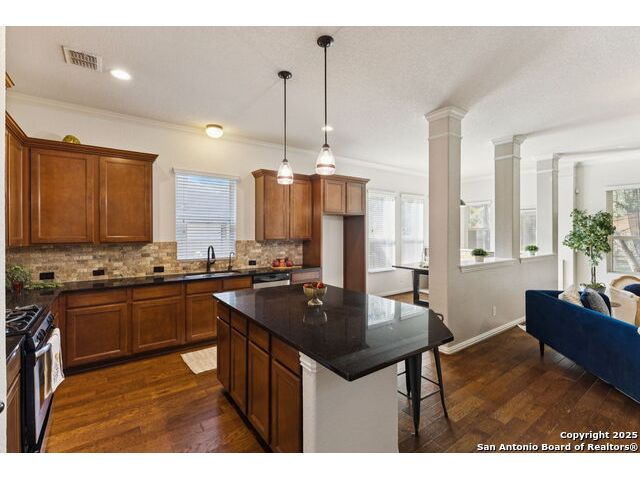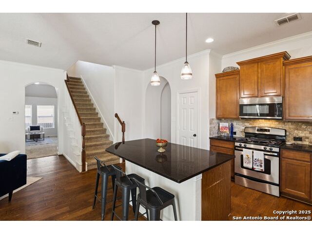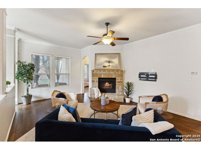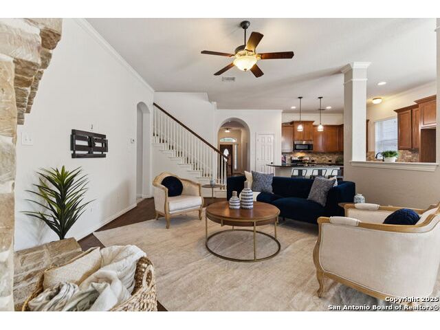 Welcome to 3539 Arroyo Grande in The Estates at Arroyo Crossing, a gated enclave of Alamo Ranch. Built by David Weekley, this home features 4 bedrooms, 2.5 bathrooms, plus a dedicated office, flex room, formal dining, breakfast nook, and an upstairs "game room" or "4th bedroom". The open layout highlights a granite island kitchen with gas cooking, a spacious living room with stone fireplace, and a private primary suite on the main floor. Outdoors, enjoy the covered patio, stone firepit, and mature trees creating a private retreat. Conveniently located near shopping, dining, schools, and major highways.