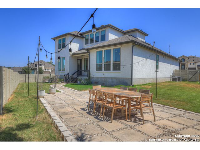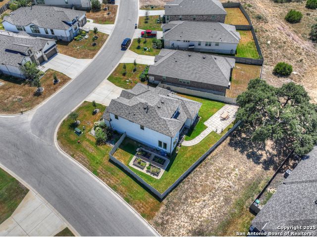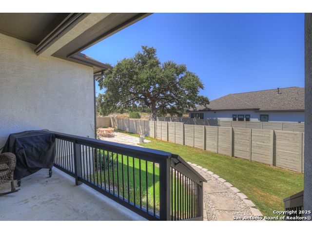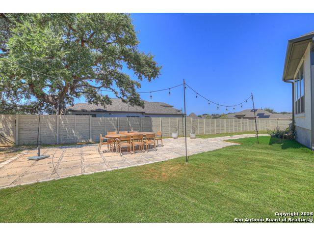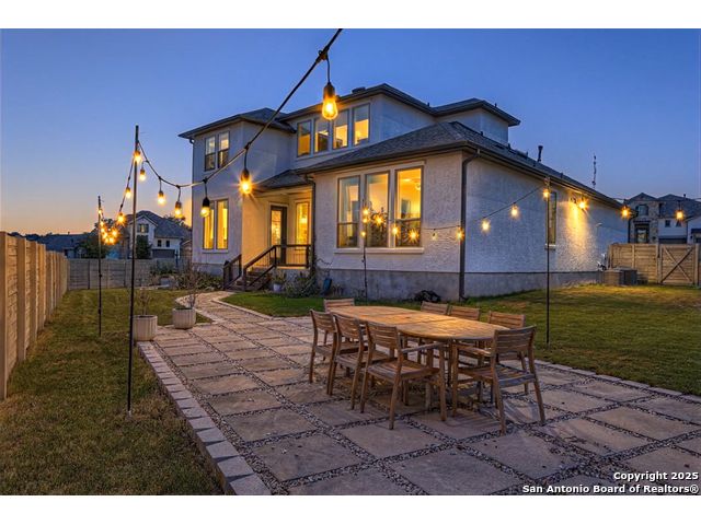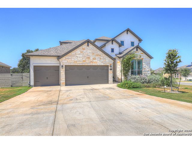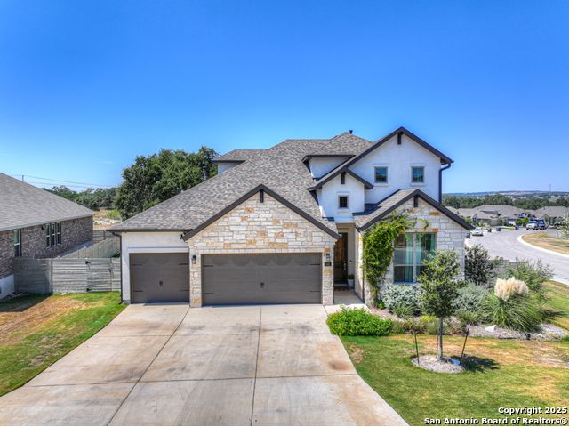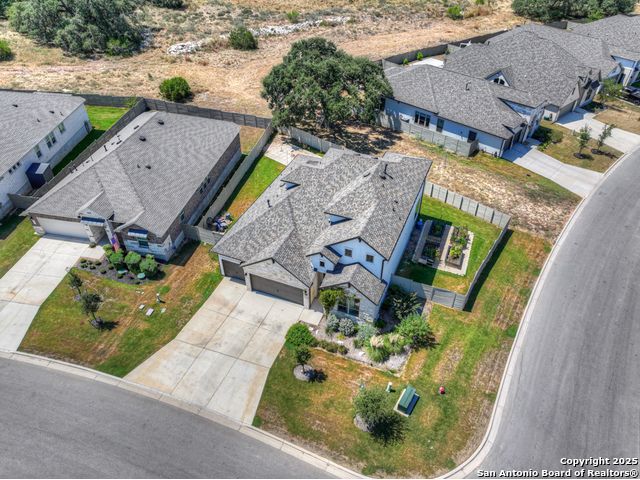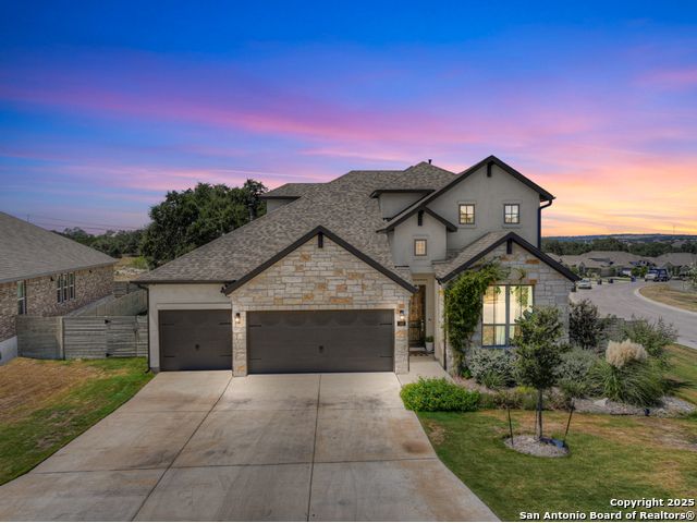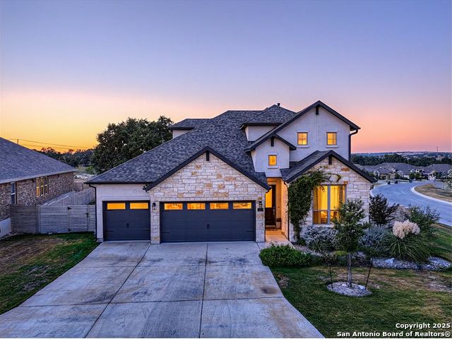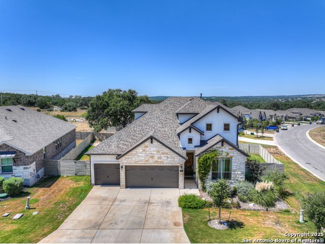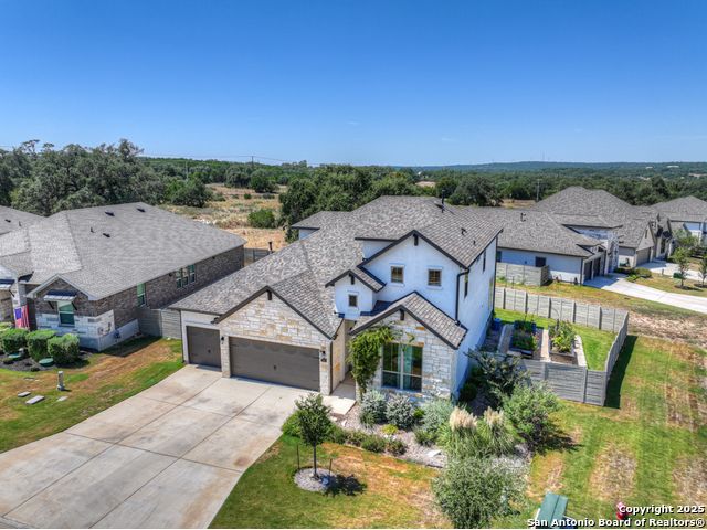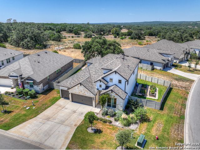 Welcome home to this lovely two-story home built by Monticello Custom Homes, offering 4 bedrooms, 2.5 bathrooms, and exceptional craftsmanship throughout. Situated on a desirable corner lot in the highly sought-after Vintage Oaks community, this residence blends Hill Country charm with modern luxury. Inside, the home features an open-concept floor plan with seamless flow for both entertaining and everyday living. The chef's kitchen includes a gas cooktop, farmhouse sink, built-in range and microwave, custom woodwork, and ample storage, while the adjoining dining space creates a perfect gathering spot for family and friends. The spacious primary suite is a true retreat, complete with a garden tub, dual vanities, and a generous walk-in closet. Additional highlights include a private office and an upstairs family room. The outdoor living spaces are equally impressive; A covered patio, privacy fence, and custom-built entertaining area make this backyard ideal for hosting. Four raised planting beds provide the perfect space for gardening, while the three-car garage offers plenty of room for vehicles, storage, or a workshop. Beyond the home, Vintage Oaks offers a lifestyle unlike any other, with access to four resort-style swimming pools, a lazy river, a state-of-the-art fitness center, tennis, pickleball, volleyball, and basketball courts, as well as soccer and baseball fields, playgrounds, and picnic areas shaded by century-old oak trees. Miles of hiking and biking trails wind through the community, and a Tuscan-style clubhouse hosts year-round events and gatherings. Adding to the appeal, the property is surrounded by natural beauty with scenic views and local wildlife including deer and native birds, creating a serene and private setting. This property presents a rare opportunity to enjoy a luxurious lifestyle immersed in nature, all within one of the most desirable communities in the Texas Hill Country. Don't miss your chance to make this exceptional home your own slice of paradise in Vintage Oaks.