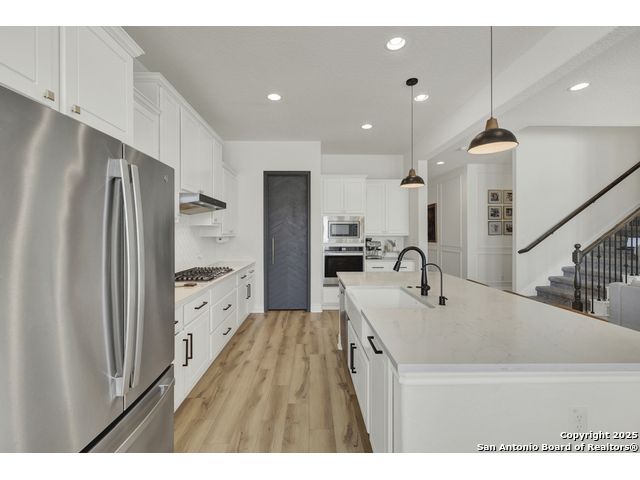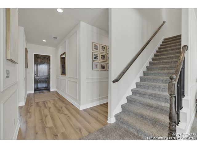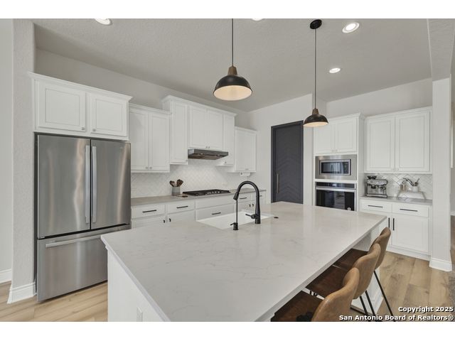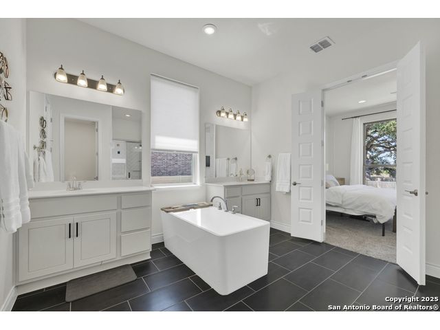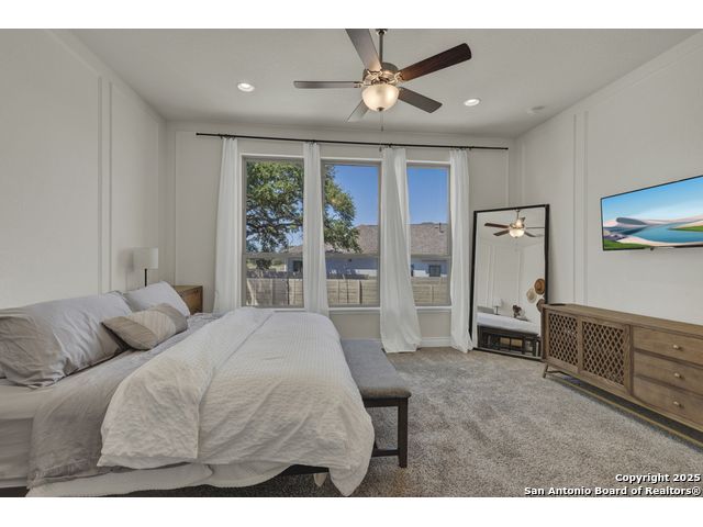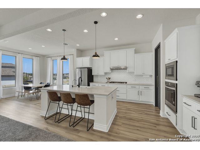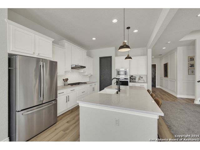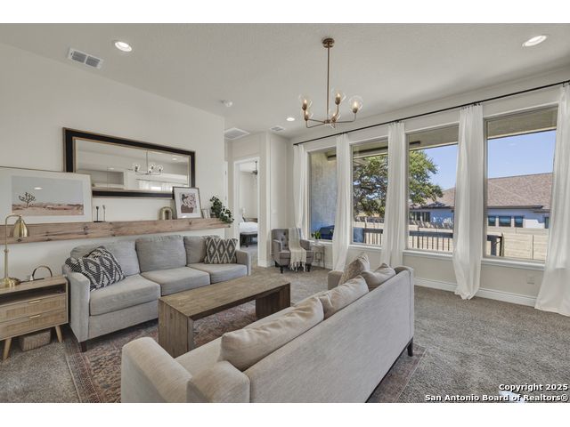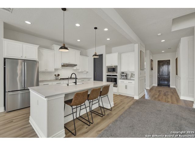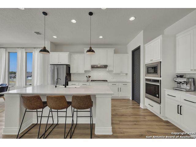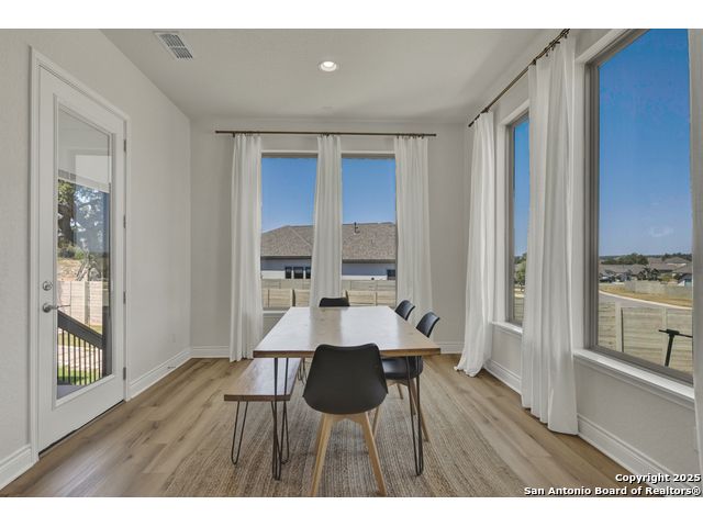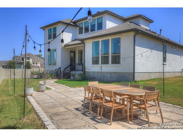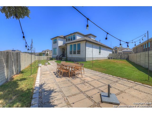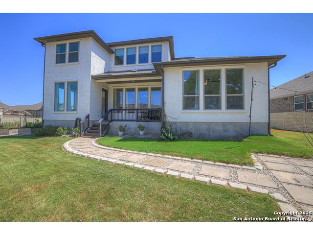 Welcome home to this lovely two-story home built by Monticello Custom Homes, offering 4 bedrooms, 2.5 bathrooms, and exceptional craftsmanship throughout. Situated on a desirable corner lot in the highly sought-after Vintage Oaks community, this residence blends Hill Country charm with modern luxury. Inside, the home features an open-concept floor plan with seamless flow for both entertaining and everyday living. The chef's kitchen includes a gas cooktop, farmhouse sink, built-in range and microwave, custom woodwork, and ample storage, while the adjoining dining space creates a perfect gathering spot for family and friends. The spacious primary suite is a true retreat, complete with a garden tub, dual vanities, and a generous walk-in closet. Additional highlights include a private office and an upstairs family room. The outdoor living spaces are equally impressive; A covered patio, privacy fence, and custom-built entertaining area make this backyard ideal for hosting. Four raised planting beds provide the perfect space for gardening, while the three-car garage offers plenty of room for vehicles, storage, or a workshop. Beyond the home, Vintage Oaks offers a lifestyle unlike any other, with access to four resort-style swimming pools, a lazy river, a state-of-the-art fitness center, tennis, pickleball, volleyball, and basketball courts, as well as soccer and baseball fields, playgrounds, and picnic areas shaded by century-old oak trees. Miles of hiking and biking trails wind through the community, and a Tuscan-style clubhouse hosts year-round events and gatherings. Adding to the appeal, the property is surrounded by natural beauty with scenic views and local wildlife including deer and native birds, creating a serene and private setting. This property presents a rare opportunity to enjoy a luxurious lifestyle immersed in nature, all within one of the most desirable communities in the Texas Hill Country. Don't miss your chance to make this exceptional home your own slice of paradise in Vintage Oaks.