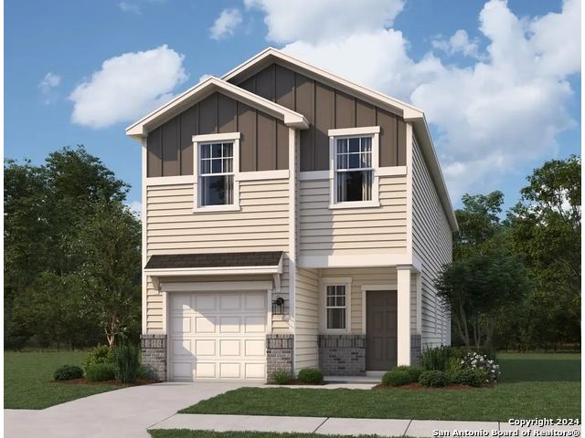 Located in Sutton Farms conveniently located 20 minutes from downtown San Antonio this community offers green space and parks for the family. Discover the elegance and comfort of the Barnard floor plan by Starlight Homes. This thoughtfully designed layout features 3 spacious bedrooms and 2.5 bathrooms, all on 1804 square feet. This 2 story home with an open-concept living area seamlessly blends the kitchen, dining, and living spaces, creating an inviting atmosphere for entertaining and everyday living. The gourmet kitchen boasts stainless steel appliances, ample counter space made from granite, island/breakfast bar, walk in pantry. The master suite offers a private retreat with a luxurious en-suite bathroom and a generous walk-in closet. Additional highlights include a loft area, 1-car garage, energy-efficient features, and stylish finishes throughout. Experience the perfect blend of style and functionality.