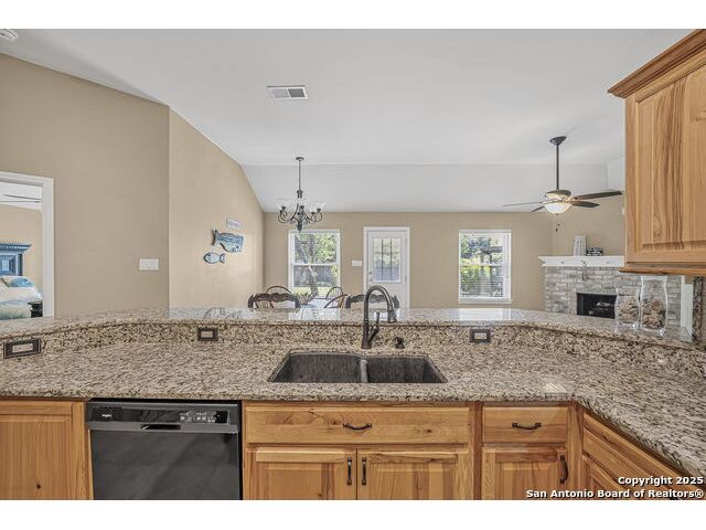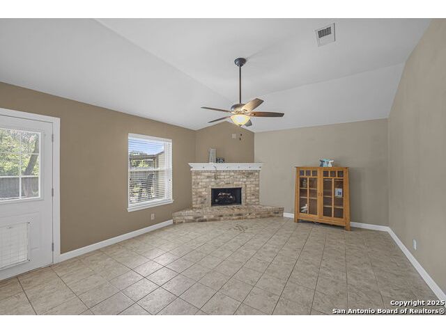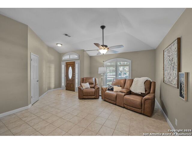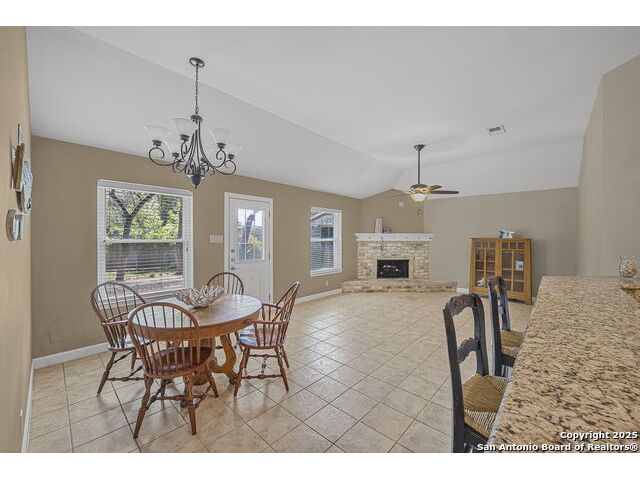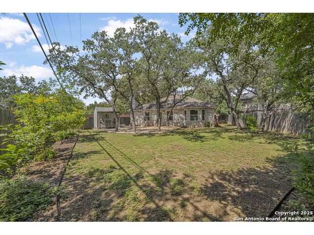 Located on a quiet cul-de-sac within the highly rated Northside Independent School District (NISD), with a short commute to UTSA and easy access to Loop 1604 and surrounding attractions. Inside, the home features plantation shutters, quartz countertops, a gas stove, and a cozy fireplace in the living room. With no carpet throughout, the interior offers a clean, low-maintenance layout. The spacious primary bedroom features a lovely bay window, while the primary bathroom includes a relaxing jetted tub for added comfort. Step outside to an extended patio and a private backyard that backs to a peaceful greenbelt. A shed wired for electricity provides flexible space for storage, hobbies, or a small workshop. The gated Cedar Springs community offers residents access to a pool, playground, pickleball and tennis courts, basketball court, and an event space for neighborhood gatherings. You're just minutes from Old Town Helotes, where you can experience family-friendly events throughout the year, including their annual cornival. You're also a short drive from the iconic John T. Floore's, a legendary venue for live music and concerts. This property combines comfort, convenience, and community in one of Helotes' most sought-after neighborhoods.
