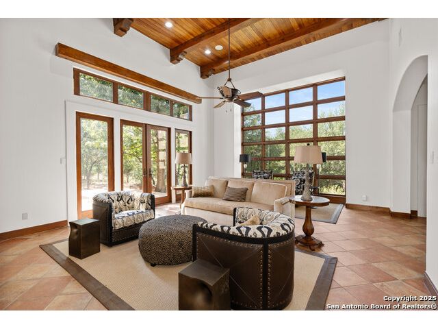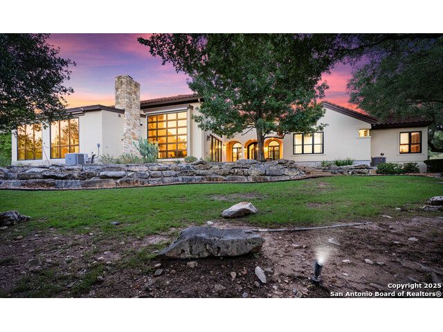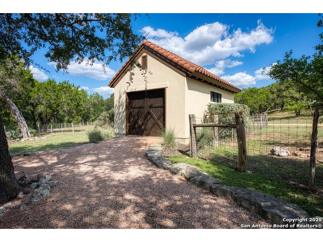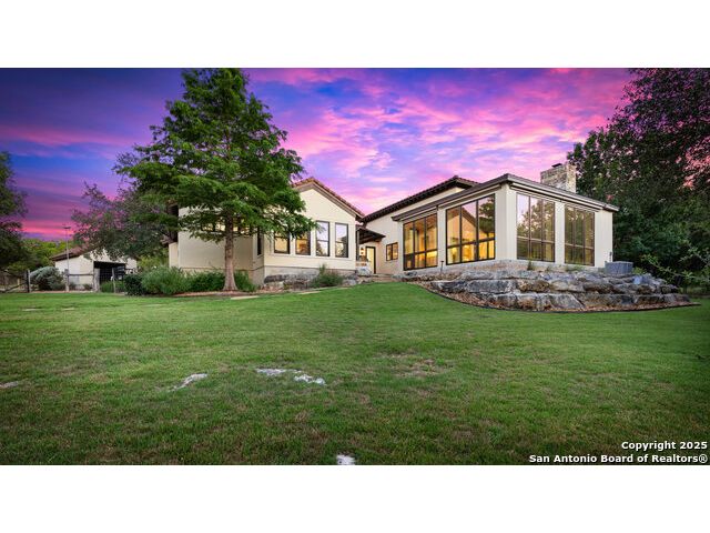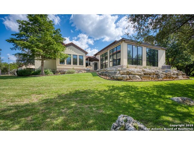Introducing 179 Riverwood - a truly one-of-a-kind waterfront sanctuary tucked within the prestigious Cordillera Ranch Country Club community. Set on an expansive 9.28-acre homesite, this extraordinary estate offers unmatched privacy, timeless Hill Country beauty, and 435 feet of pristine Guadalupe River frontage. Meandering along the spring-fed Guadalupe River, the property is framed by towering cypress trees and majestic heritage oaks, offering panoramic views and an immersive natural experience. Whether kayaking, fishing, or simply relaxing by the water, the riverfront lifestyle here is tranquil and unforgettable. Designed by renowned architect Boyce Tucker and masterfully built by Burdick & Christofilis Custom Homes in 2006, the single-story residence offers over 4,700 square feet of thoughtfully designed living space. The home features 4 bedrooms, 4.5 bathrooms, and a private motor court with 4 garage bays. Architectural elements such as vaulted ceilings, stone accents, and expansive walls of glass create a seamless connection between refined interiors and the surrounding natural landscape. Multiple outdoor living areas provide ideal spaces for cooking, dining, and entertaining. A stone fire pit nestled beneath heritage oaks and a serene riverfront seating area invite moments of quiet retreat and unforgettable gatherings alike. With room to expand, the 9+ acres offer ample opportunity for equestrian facilities, guest accommodations, or elaborate outdoor amenities-all while maintaining the exclusive privacy and grandeur that define life in Cordillera Ranch. 179 Riverwood includes the opportunity to join The Clubs of Cordillera Ranch as a Ranch Member, with the following resort-style amenities: * Four dining venues * Four resort pools * Spa & fitness center * Private club guest hotel accommodations * Tennis & pickleball courts * Rod & Gun Club * Equestrian Center. 179 Riverwood isn't just a home - it's a legacy property offering the perfect blend of elegant architecture, natural beauty, and Hill Country luxury living.