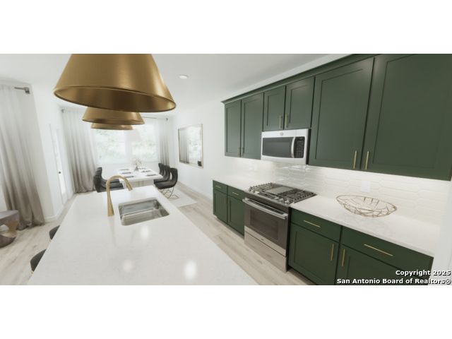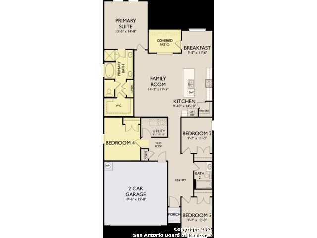 This inviting single-story home is designed for both style and functionality. At its heart is a gourmet kitchen complete with a center island, built-in appliances, and a spacious walk-in pantry. Seamlessly flowing into the open family room, the layout makes it easy to entertain guests or enjoy everyday moments together. Expansive windows fill the space with natural light while offering views of the backyard, creating a warm and welcoming atmosphere. The private primary suite is a true retreat, featuring a luxurious bath with a garden tub, separate shower, and a walk-in closet that keeps everything beautifully organized. Two additional bedrooms are thoughtfully placed on the opposite side of the home, providing comfort and privacy for family or guests. A shared secondary bath adds convenience to the layout. Step outside to a covered patio, perfect for relaxing evenings or weekend gatherings.