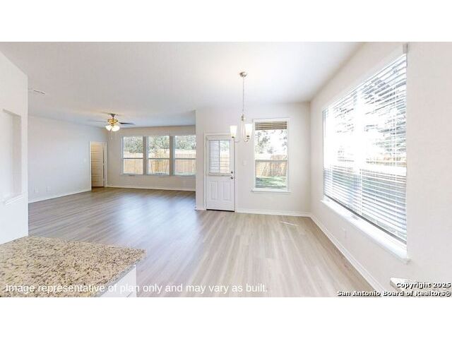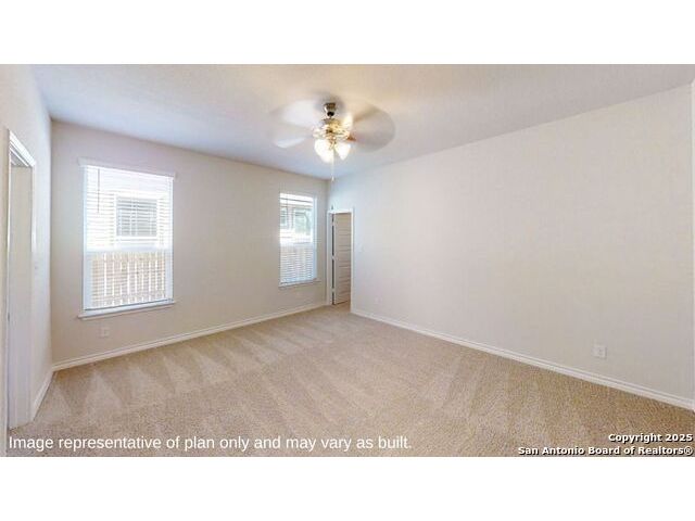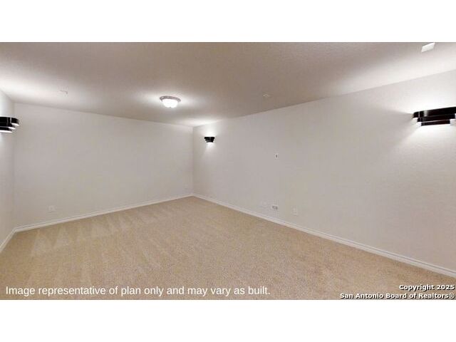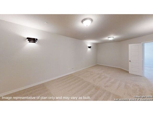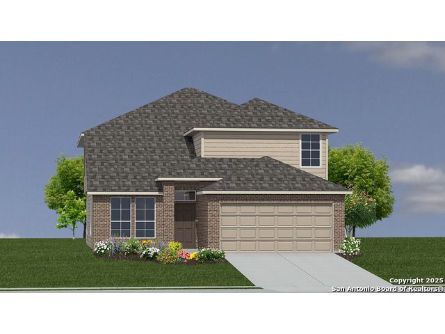 Introducing The Stallion, a two-story home featured at Brookstone Creek in San Antonio, TX. This floor plan offers 3 classic front exteriors, a 2-car garage and a fully yard landscaping package, ensuring that your home looks its best every single day. Inside this 4 bedroom, 3.5 bath home, you'll find 3284 square feet of open-concept living. The first floor offers a welcoming entry way that opens to a secluded study room adjacent to a stunning formal dining room. A private hallway off the entry connects a powder bath and utility room, both with tile floors. A spacious eat-in kitchen and breakfast nook are located past the dining room and feature stainless steel appliances, beautiful quartz countertops, a natural gas cooking range and a kitchen island with a breakfast bar and roomy, single basin sink. Your kitchen flows seamlessly into your breakfast nook and a living room with large windows and natural light. The private, main bedroom suite is an oasis, featuring large windows, carpet flooring, a ceiling fan and an attached ensuite bathroom. Enjoy dual vanity sinks, a private room for the toilet, a tiled walk-in shower and a walk-in closet with plenty of space! The second floor opens to a game room with plenty of natural light and space to play. Your secondary bedrooms are located upstairs as well and all feature walk-in closets. Bedroom 2 even has its own ensuite bathroom and is perfect for out-of-town guests in need of added privacy. A standout feature of The Stallion is the media room, located off the game room and provides plenty of entertainment space for television or movie lovers. Additional features include tall 9-foot ceilings, 2-inch faux wood blinds throughout the home, pre-plumb for water softener loop, hard surface flooring at the entry, downstairs, halls, living room, kitchen, and dining/breakfast area, and more! You'll enjoy added security in your new DR Horton home with our Home is Connected features. Using one central hub that talks to all the devices in your home, you can control the lights, thermostat and locks, all from your cellular device.
