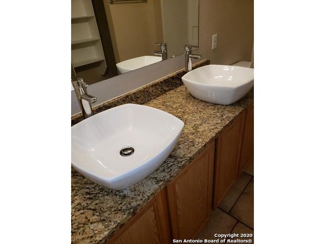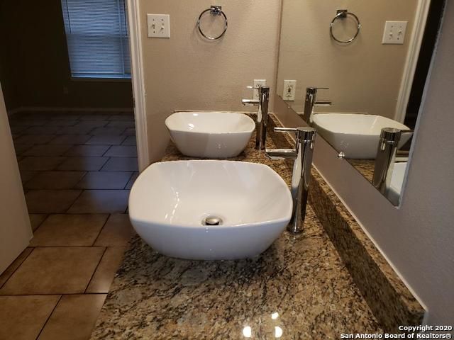 Beautiful One-Story Home with Modern Updates Step into this open-concept 3-bedroom, 2-bath home featuring fresh interior paint and stylish 18x18 ceramic tile flooring throughout-no carpet! The kitchen boasts sleek granite countertops, updated lighting, and blinds, while the primary suite offers double vessel sinks for a touch of luxury. Enjoy the convenience of a 2-car garage, mature shade trees, a private fenced yard, and an oversized backyard-perfect for entertaining or relaxing. Located in a quiet neighborhood near Randolph AFB, Ft. Sam, major highways, and shopping centers.