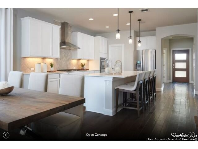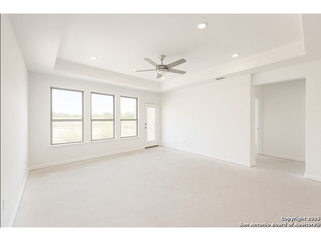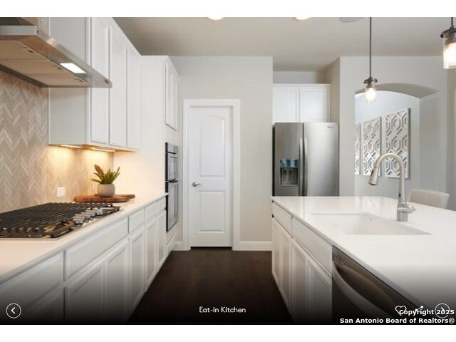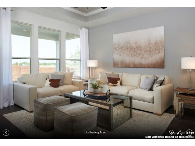 This newly built Fox Hollow plan by Pulte Homes is a stunning representation of the model home. With its light brick and cream stone facade, the home boasts exceptional curb appeal and is ideally located in the heart of La Cima. Upon entering, you're greeted by highly sought-after greige-colored luxury vinyl plank flooring that is durable, waterproof, and seamlessly flows throughout the home. The front office features elegant glass French doors and a large window that fills the room with natural light. The kitchen is outfitted with upgraded Kitchen Aid appliances, stylish Maple Almond painted cabinetry, and sleek light quartz countertops. In the gathering room, unwind beneath a timeless tray ceiling accented with crown moulding, while enjoying views of the lush greenbelt and the expansive 45-acre central park. The luxury vinyl plank flooring continues into the private owner's suite, which is wrapped in windows overlooking the same serene greenbelt perfect for relaxing. The owner's bath features floor-to-ceiling tiles, including around the garden-style bathtub, creating a luxurious feel. Step outside to a spacious covered patio, ideally shaded to offer protection from the intense Texas sun. From here, enjoy the same magnificent park views while soaking in all that the La Cima community has to offer. Don't wait-schedule a tour of this exceptional new construction home today!