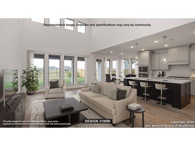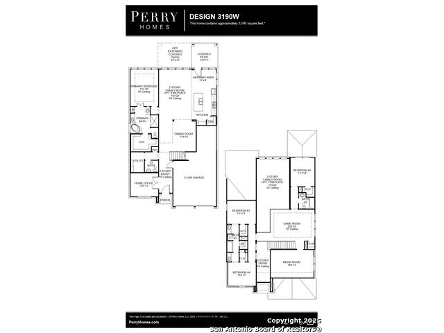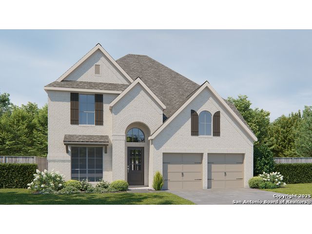 Home office with French doors set at two-story entry. Open formal dining room just off the kitchen area. Two-story family room with 19-foot ceilings, a wood mantel firepace and a wall of windows. Kitchen features an island with built-in seating space, 5-burner gas cooktop, a walk-in pantry and opens to the morning area. Private primary suite with a wall of windows. Primary bath includes double doors, garden tub, separate glass-enclosed shower, dual vanities, a linen closet and a large walk-in closet. Upstairs game room and adjacent media room. Secondary bedrooms, a Hollywood bath and storage closet complete the second floor. Extended covered backyard patio. Three-car garage.