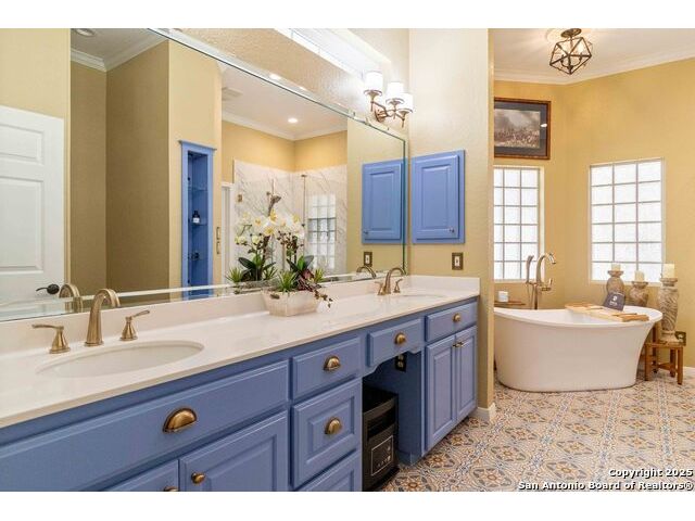 *!! MAJOR PRICE IMPROVEMENT** BELOW CAD * This beautifully maintained 5-bedroom, 3-bathroom residence offers an impressive 4,021 square feet of luxurious living space, perfect for families seeking comfort and style. Nestled in the tranquil gated community of Gardens at Hunters Creek, this home combines privacy with convenience, making it an ideal retreat. As you step inside, you'll be greeted by an inviting foyer full of built-ins and leads to two guest bedrooms and a full bath. Following the foyer around the bend takes you to the impeccably styled formal dining room. The expansive open-concept layout seamlessly connects the living, dining, and kitchen areas, all of which feature high ceilings. The spacious living room is perfect for entertaining, featuring large windows that fill the space with natural light and provide picturesque views of the greenbelt . The gourmet kitchen is a chef's delight, equipped with brand new modern appliances, ample cabinetry that was just painted, and a generous island. The kitchen layout highlights a breakfast nook and a breakfast bar. Whether you're hosting family gatherings or enjoying quiet evenings, this kitchen is designed for both functionality and style. Retreat to the well-appointed primary suite, complete with a walk-in closet full of built-ins, and a recently remodeled en-suite bathroom featuring dual vanities, a soaking tub, and a large separate shower. Upstairs you will find an additional large bedroom and full bath. The additional upstairs bedrooms provide plenty of space for family and guests; or could be used as flex space for an exercise room or a theatre room. Step outside to discover your full length covered patio with no back neighbors on this greenbelt lot. Enjoy the nicely landscaped yard in peace and privacy. Take advantage of the small greenhouse to hone your gardening skills. Gas grill conveys and hot tub is negotiable. The outdoor space is perfect for entertaining or simply unwinding after a long day. Located just 2 minutes from HEB, additional shopping, dining, and top-rated schools, this home offers both convenience and tranquility. Don't miss your chance to own this exceptional property in a highly sought-after community. Schedule your private tour today and experience the perfect blend of luxury and comfort! Preferred lender discount available. Home is under an active home warranty that can transfer to the buyer.