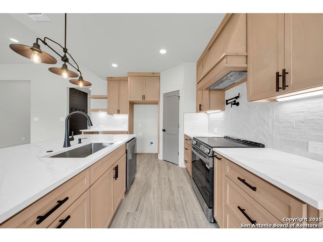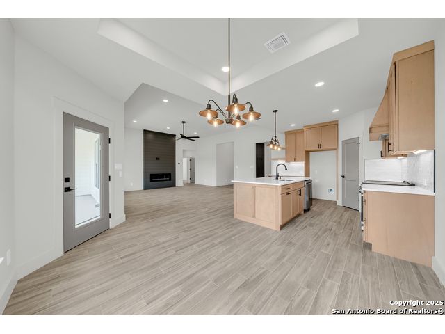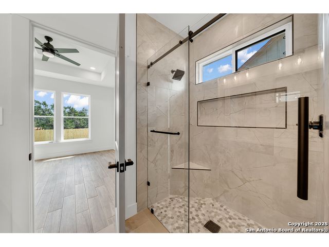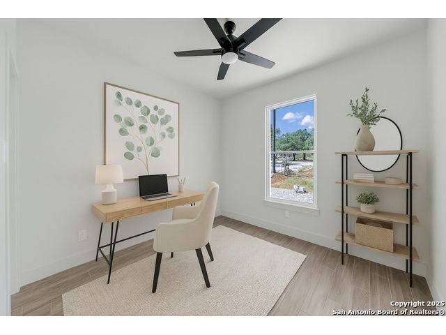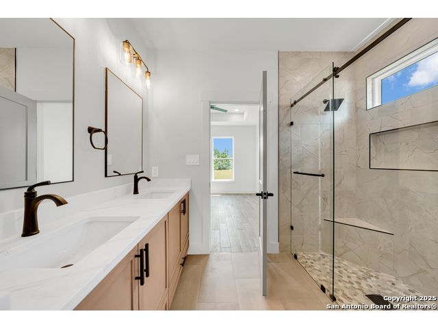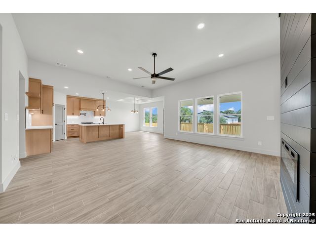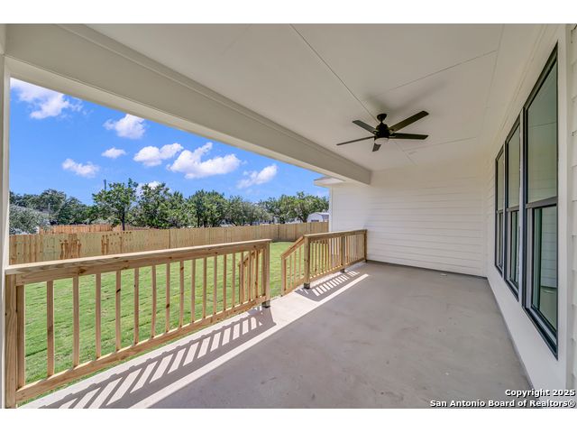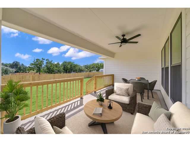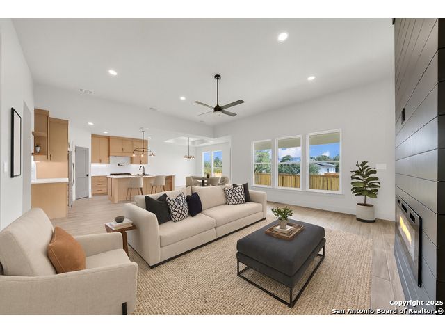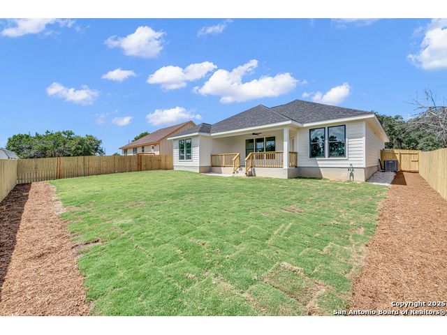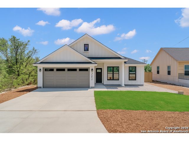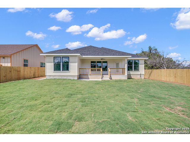 Builder incentive available! - use toward closing costs, rate buydown, or upgrades! Welcome to 1556 Rimrock Cv, where modern comfort meets timeless Hill Country style. Thoughtfully designed with high-end finishes and a functional open layout, this stunning new construction home features soaring ceilings and expansive 6-foot windows that fill the interior with natural light. Porcelain tile flooring throughout offers both durability and refined elegance. The chef's kitchen is beautifully appointed with custom cabinetry, quartz countertops, under-cabinet lighting, premium fixtures including a Kohler kitchen faucet, and LG appliances. Bathrooms are equally elevated with Delta fixtures, a Kohler water closet, and sleek Kwikset hardware throughout. Additional upgrades include a cozy fireplace, A/C smart thermostat, and water softener prep for long-term ease and efficiency. Freshly completed landscaping enhances the clean curb appeal, making this home truly move-in ready. Located in the desirable Cypress Cove community, this home is just 1 mile from Boat Ramp 11, where the Guadalupe River flows into Canyon Lake - perfect for boating, fishing, kayaking, and weekend water activities. Community amenities include a park, swimming pool, BBQ area, basketball and tennis courts, and a reservable community center for special events. Centrally positioned with quick access to San Antonio, New Braunfels, Boerne, Austin, and the Canyon Lake Hill Country area, this home offers the ideal balance of peaceful living and convenience.