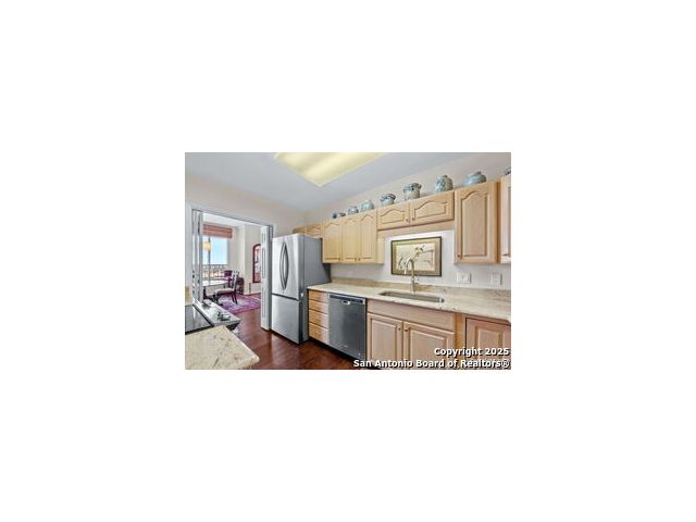 Incredible "G" floor plan with spectacular Downtown San Antonio Skyline views! Discover a sophisticated 2-bedroom, 2-bath condominium that offers the perfect balance of comfort, style, and convenience. With an open layout, rich wood floors, and walls of natural light, this residence feels warm and inviting from the moment you arrive. The kitchen and bathrooms feature gorgeous natural stone counters. In-unit washer and dryer connections bring added ease to your daily routine. Nestled near Alamo Heights, The Towers is San Antonio's premier full-service high-rise community for active 55+ residents. Here, everyday living is elevated with amenities designed for both relaxation and connection: Concierge & Valet Services for worry-free convenience, Wellness Center & Personal Training to support an active lifestyle, Resort-Style Pool & Spa for relaxation at your doorstep, Two On-Site Restaurants offering dining just steps away, Weekly Housekeeping for simplicity and peace of mind, Cultural & Social Activities that keep the community vibrant and engaging, 24-Hour Security for complete confidence and comfort. At The Towers, you'll find more than just a home-you'll discover a community. Surrounded by neighbors who share your zest for life, this is where luxury, convenience, and connection come together.