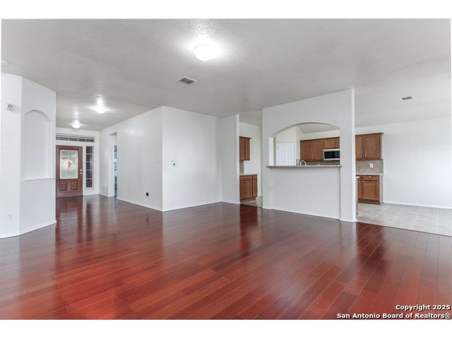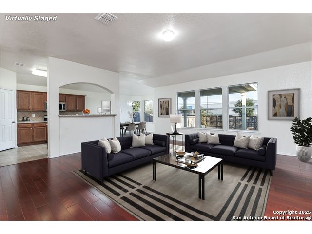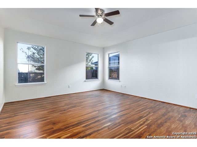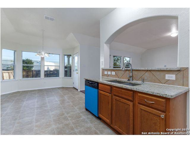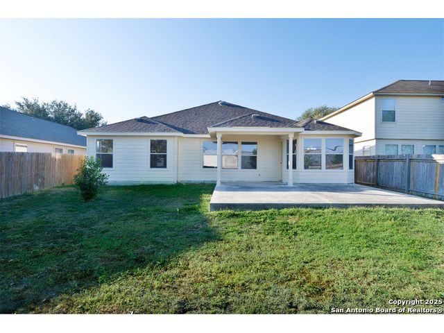 This 3 bed, 2 bath home offers a clean, move-in ready layout with practical updates and open spaces. The main living area features rich wood flooring that flows seamlessly into the dining and kitchen areas, creating a simple, cohesive feel. The kitchen is equipped with brand new granite countertops, stainless steel appliances including a new dishwasher, and plenty of cabinet storage. The primary suite sits at the back of the home for added privacy and includes a full bath with a separate shower and soaking tub. Have I mentioned that this home also boasts a brand new HVAC/AC system and water heater to ensure that a new buyer doesn't have to worry about these high ticket items in the immediate future? Well now you know. On to the secondary bedrooms that are comfortably sized with natural light and larger layouts. The backyard displays an extended covered patio that gives you options for grilling, outdoor dining, or play space. The two-car garage provides secure parking along with extra storage. Located on the Northeast side of San Antonio, the home offers quick access to major highways within a few minutes such as I-10, 410, 1604, shopping, and everyday conveniences.