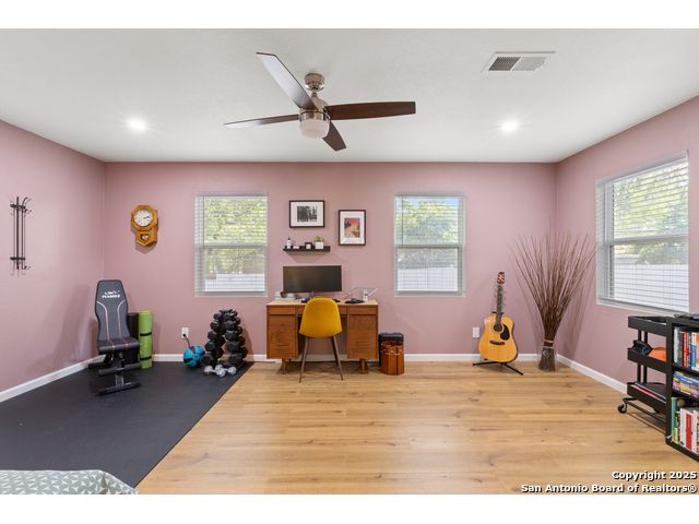 Welcome to 8002 Briargate, a beautifully maintained home in a desirable San Antonio neighborhood. Step inside to an inviting open-concept living and dining area, perfect for entertaining family and friends. The kitchen offers plenty of cabinet and counter space for cooking and storage. A versatile office space provides the option for a home workspace or can easily be converted into a fourth bedroom to meet your family's needs. The spacious living room features an elegant electric fireplace, adding warmth and style. Retreat to the generous primary suite with a private bath and ample closet space. Enjoy the large backyard, ideal for outdoor gatherings, gardening, or play. Conveniently located near shopping, dining, schools, and major highways, this home offers both comfort and convenience. Move-in ready and full of potential-don't miss your chance to make it yours!