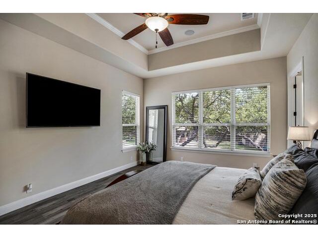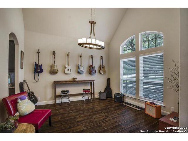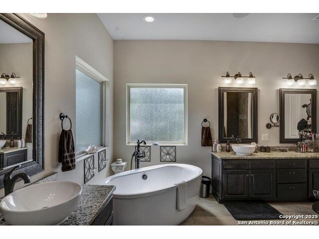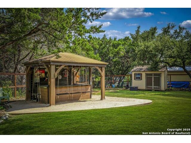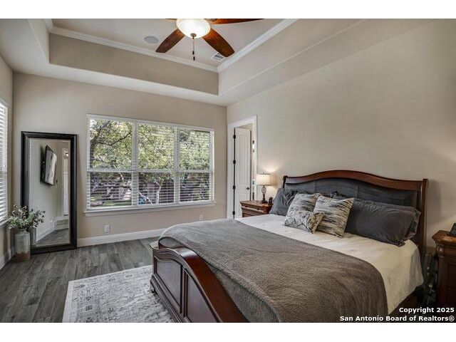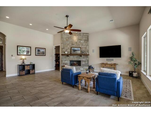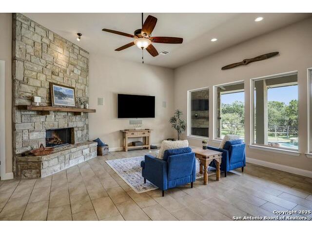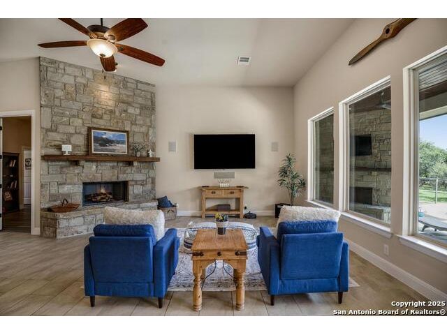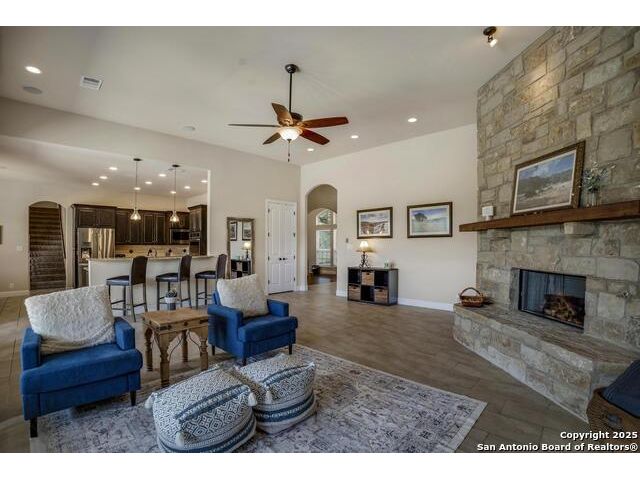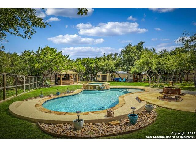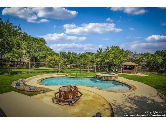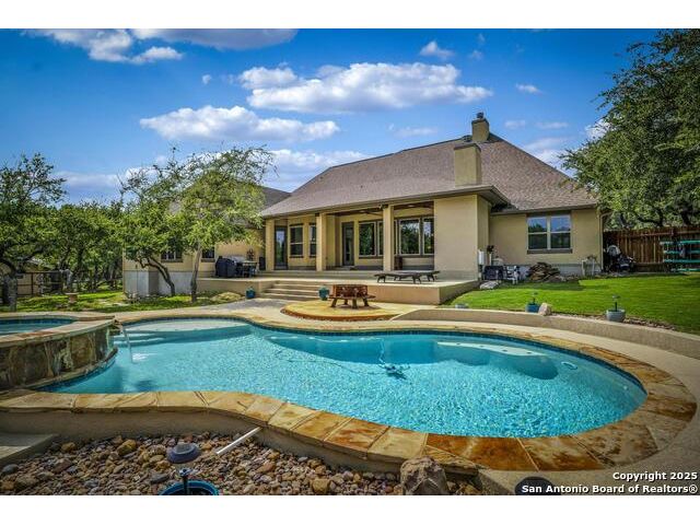 Welcome to 126 Mountain Echo. This gorgeous custom home is located in the coveted neighborhood of Timberwood Park and it has a contemporary Hillcountry style. It features mostly first floor living with the media room upstairs. As you walk in you will notice the high ceilings and the expansive great room with the adjacent chefs kitchen and butler's pantry. The main bedroom features a spa like bathroom with a soaking tub, and large walk in closet. As you step outside you will be received by resort like vibes from the beautiful pool to the well manicured lawn. If you keep walking back you will encounter the Tiki bar, complete with sand and all. Truly an entertainers paradise