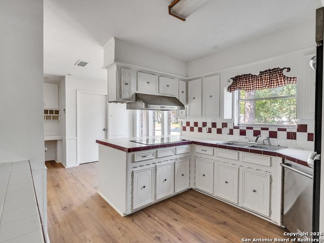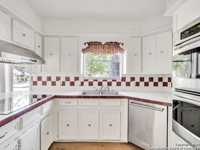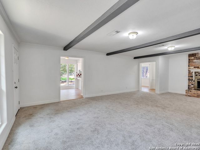 This recently renovated charming home perfectly blends timeless character with modern updates, all in a prime location. Nestled on an oversized corner lot surrounded by mature trees, it offers unmatched curb appeal and a central setting just minutes from Grand Parkway, Interstate 45, Hardy Toll Road, and only 2 miles from Old Town Spring. Conveniently close to The Woodlands Mall and the Exxon facility, this home is ideal for anyone seeking both comfort and accessibility. The detached three-car garage provides ample parking and storage. As you step inside, you'll be greeted by fresh new paint, updated flooring, and plush carpet throughout. The open floorplan begins with a welcoming dining room, leading into a beautiful kitchen featuring brand new stainless steel appliances, a walk-in pantry, and a breakfast nook. Beside it is a built-in desk, perfect for a home office setup. The inviting living room showcases charming wood beams, abundant natural light, and a stunning wood burning brick fireplace as the focal point. With four spacious bedrooms, each with its own walk-in closet, there's room for everyone. Three bedrooms share a recently renovated bathroom with dual vanities, while the primary suite offers a large walk-in closet and its own private bath. Step outside to a backyard that's a blank canvas, ready to be transformed into your dream outdoor space, with serene views of the surrounding trees. The community enhances the lifestyle with amenities including a clubhouse, swimming pool, volleyball and basketball courts, and even pickleball, ensuring fun and relaxation for all. This gorgeous home is move in ready and waiting for its new owner, don't miss the chance to make it yours!