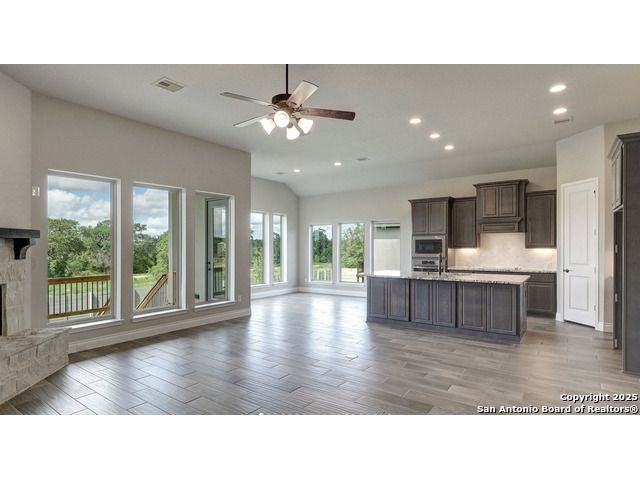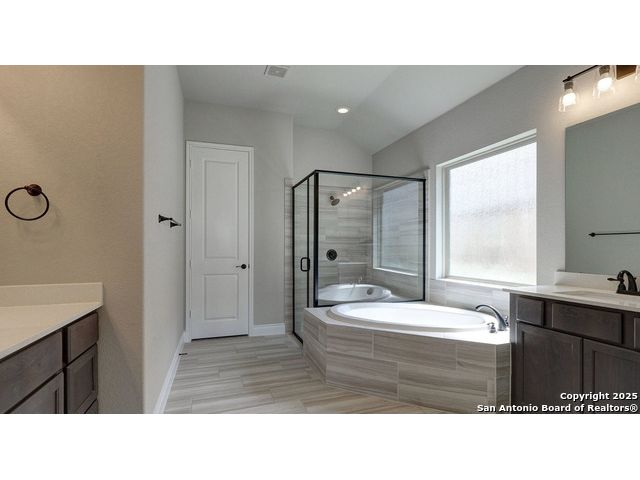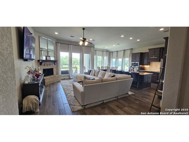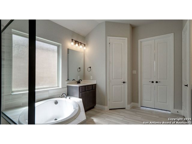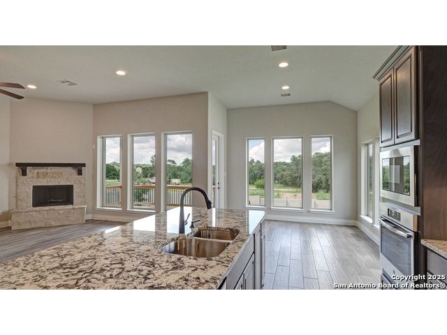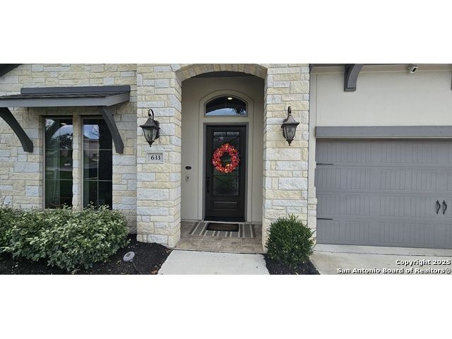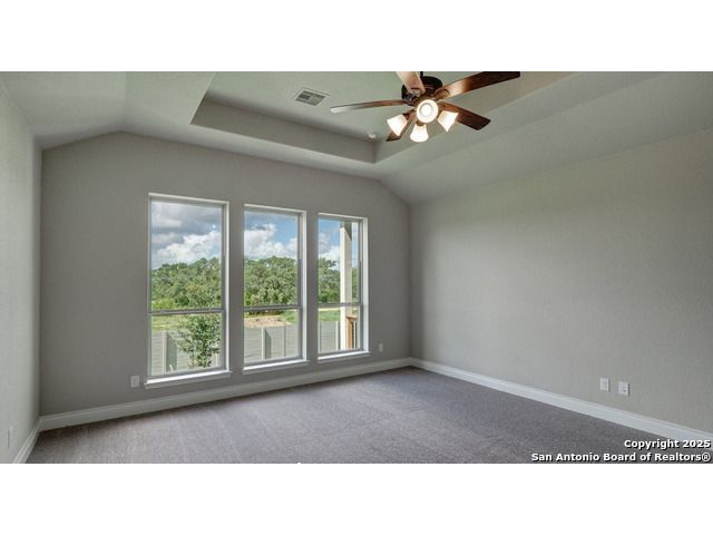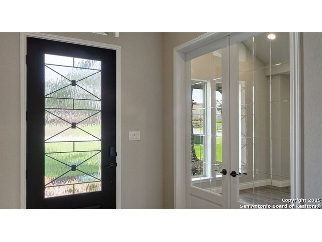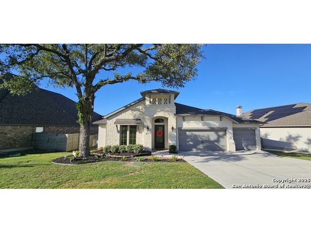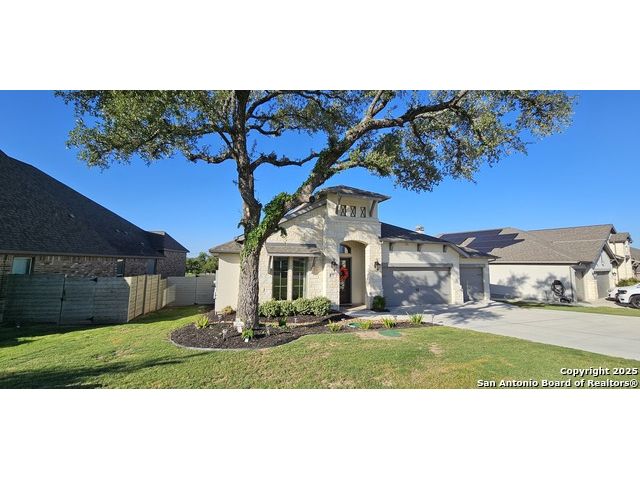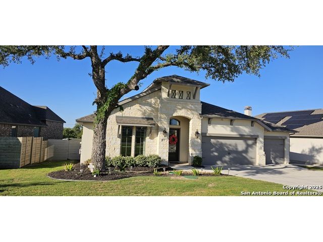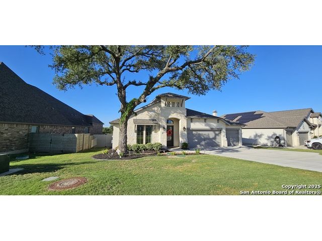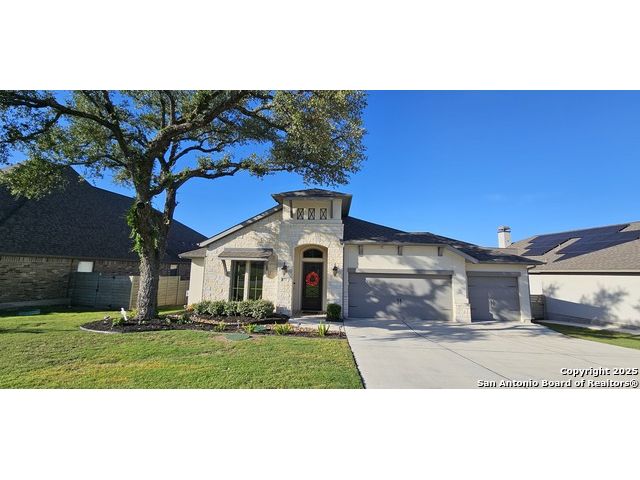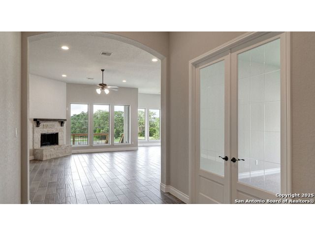 Ready to find your dream home? Step inside this gorgeous Perry Home, where peace and privacy are yours with no front or back neighbors. You'll feel the difference on this expansive 80-foot-wide lot, starting with the striking mahogany front door that welcomes you. Natural light floods the home through walls of windows in the kitchen, family room, and master bedroom, creating a bright and airy feel. The open-concept layout makes it easy to move from the gourmet kitchen, with its oversized island, to the cozy family room, complete with a fireplace and elegant ceramic tile floors. This home is designed for both work and play. Find a quiet spot to focus in the private library, featuring French doors and a stunning 13-foot ceiling, or host game night in the dedicated game room, also with French doors. The master suite is your personal sanctuary. Relax with a wall of windows, a huge walk-in closet, and a luxurious bathroom boasting dual vanities, a garden tub, and a separate glass-enclosed shower. An additional guest suite with a full bath ensures visitors feel right at home. Beyond the home's beauty, you'll love the convenience. Enjoy peace of mind with a 10-year Perry Home foundation warranty. Plus, the location is unbeatable-simply walk across the street to the community gym and pool, or take a quick 5-minute golf cart ride to the incredible Vintage Oaks amenities, including the lazy river.