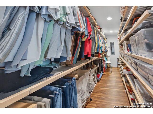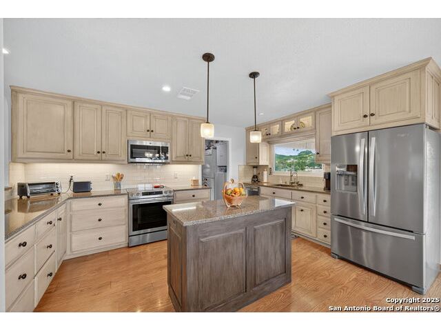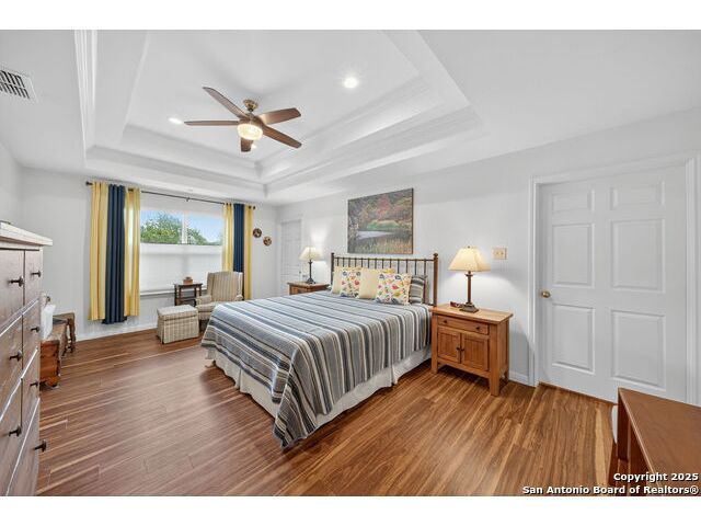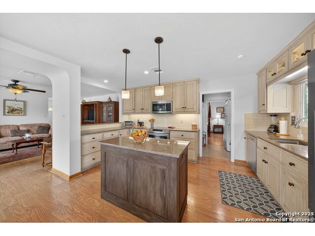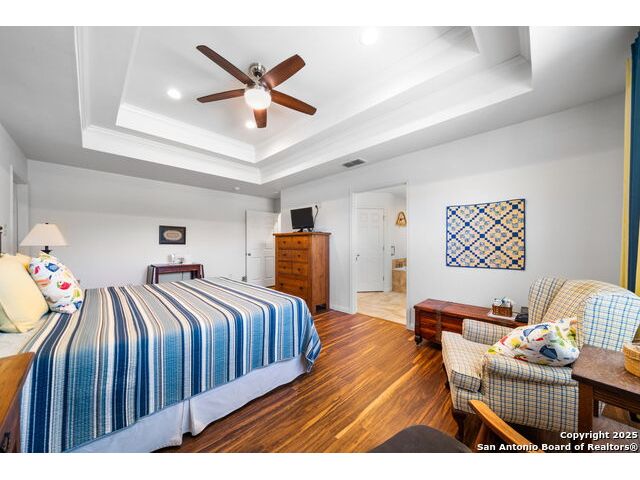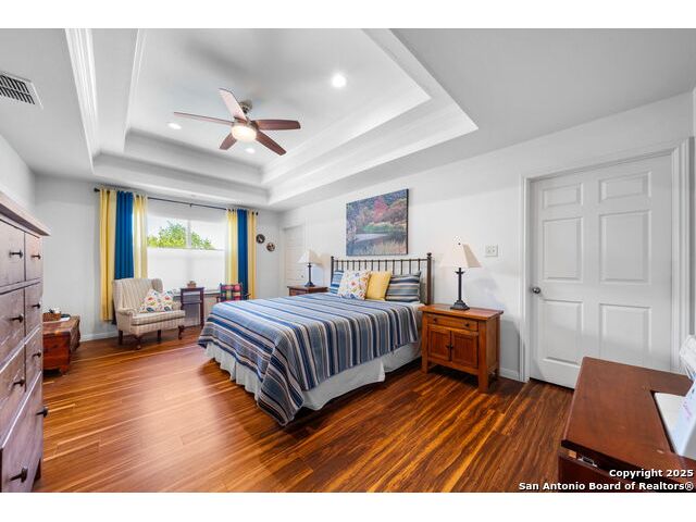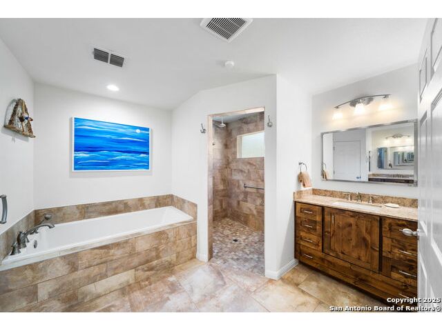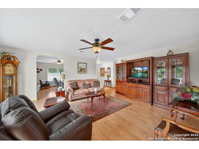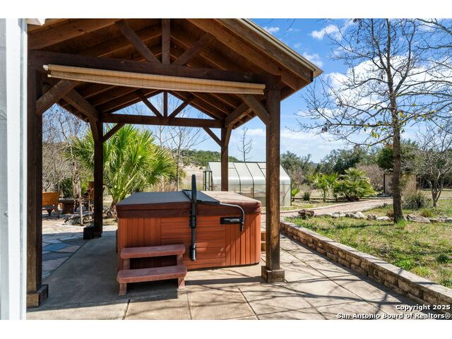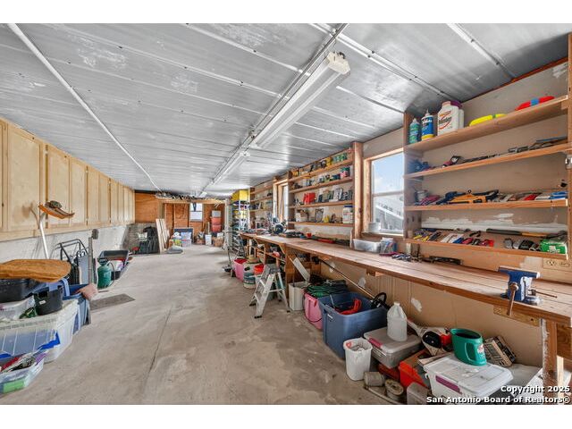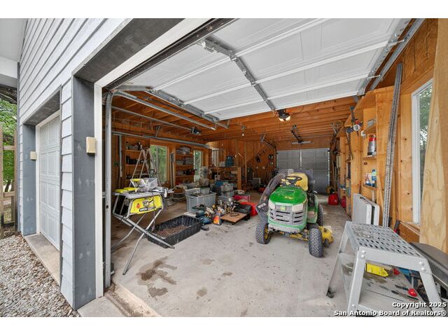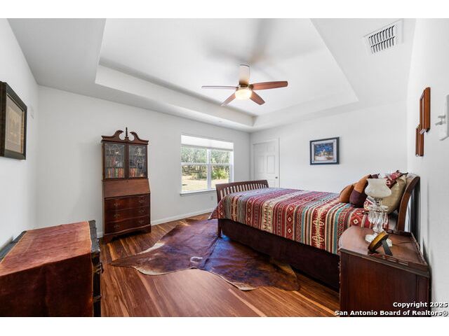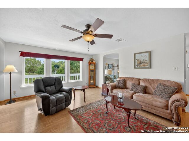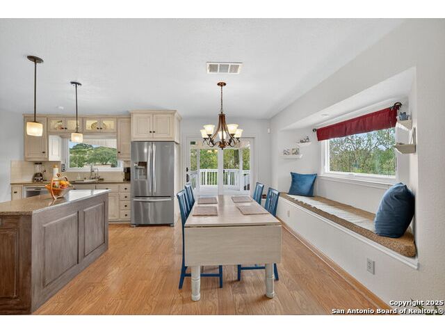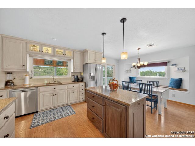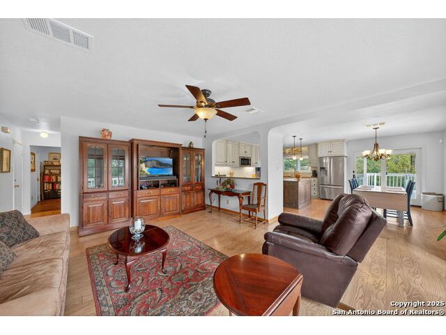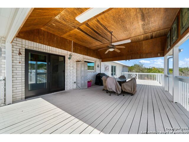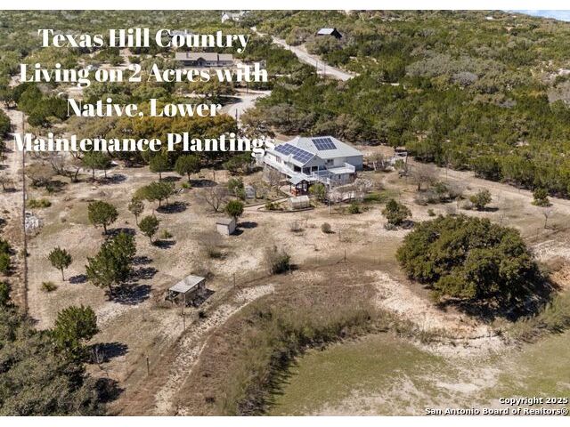 Nestled at the end of a cul-de-sac in Lakehills, this beautifully updated home offers the perfect blend of privacy, functionality, and Hill Country scenery. Sitting on two acres, this property is designed for both relaxation and productivity, featuring a unique floor plan with two primary bedroom suites and two additional spaces ideal for offices or flex rooms. Enjoy stunning views from the expansive deck off the kitchen, or unwind in the hot tub while taking in the serene surroundings all only a 5 minute drive to the elementary school. The property is rich with features, including a koi pond, a deer tight fence and a walk out "basement" for extra storage. The metal roof with solar panels, along with new windows and French doors, enhances energy efficiency and modern comfort. Car enthusiasts or hobbyists will love the attached two-car garage plus a detached two-car garage, which includes a heated and cooled bonus room above-perfect for a crafting studio, or game room. Inside, you'll find updated flooring, an updated kitchen, and a beautifully upgraded primary bathroom. Whether you're looking for a peaceful retreat or a functional home with versatile spaces, this Lakehills gem has it all! Don't miss this opportunity to own a slice of Hill Country paradise just minutes from Medina Lake. The neighborhood also features a neighborhood pool, playground and boat launch.