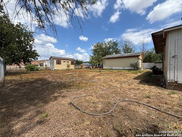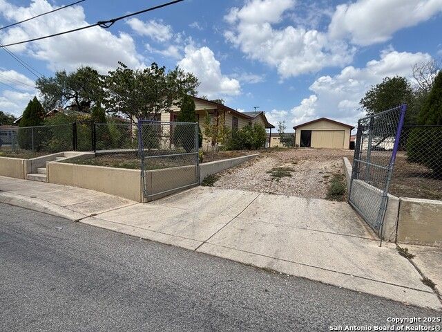 This 864 sq. ft., 2-bedroom, 1-bath house offers endless potential on the San Antonio's south side. Situated on two spacious, level lots with mature trees, the property is fully fenced and features dual access points off Wainwright for added convenience. In addition to the main house, the property includes a storage building and a versatile 25x20 structure-perfect to use as a garage, workshop, additional storage, or flex space to fit your needs. Ideally located near Palo Alto College, Texas A&M-San Antonio, the Toyota Plant, and major highways IH-35 and Loop 410, this house provides quick access to schools, shopping, and dining. Being sold as-is, this property is a great opportunity for homeowners or investors looking to customize a home or expand on a large lot in a growing area.