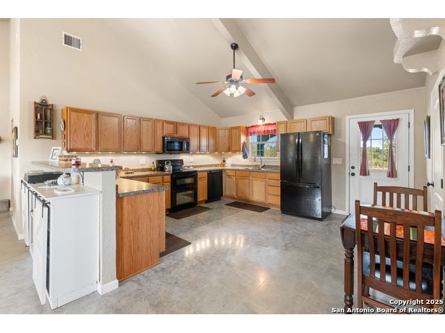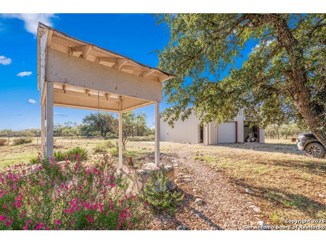 Nestled among gorgeous mature oaks, on a 9.2 ac. AG EX parcel, this stunning property offers the perfect blend of modern efficiency & rustic charm.The 1880sf home offers 3 bedrooms & 2 baths with SIP contruction (Super insulated panel) ensuring high-energy efficiency and year round comfort. Split bedroom layout offers privacy & functionality. Large country kitchen looks out into the Hill country views embracing the beauty of the hills. 30X40 metal shop on slab offers many options and includes an RV hook up &storage with large garage door on one side. Sustainability meets innovation with a state of the art rainwater collection system and well providing great water options. 400+ feet of N Llano River with access down to the water gives you everything you could want. Wildlife ex adds lower taxes and located only 4 miles from town gives you the perfect balance in convenience and country life. Come visit the lifestyle you have dreamed of to plant roots & grow your dreams!