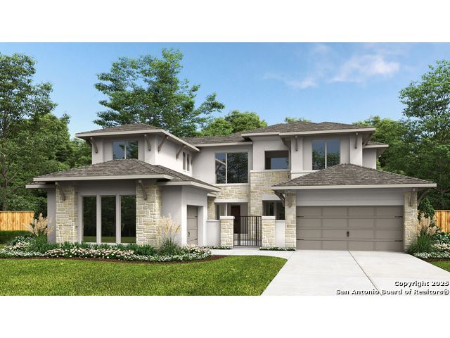 Courtyard leads to a grand two-story entry framed with a two-story formal dining room both with 21-foot ceilings. Dedicated home office with French doors and a wall of windows with a gorgeous view of the courtyard. Generous two-story family room with 21-foot ceilings and a wall of windows. Island kitchen with built-in seating space, a butler's pantry and a corner walk-in pantry. Morning area just off the family room. Secluded primary suite features a private hallway that leads to the bedroom. Primary bathroom includes dual vanities, a garden tub, a separate glass enclosed shower, linen closet and dual walk-in closets. Downstairs guest suite with a walk-in closet, linen closet and a full bathroom. Second level boasts a game room, media room with French doors, additional guest suites with walk-in closets and full bathroom and an additional bedroom. Covered backyard patio. Mud room and utility room just off the three-car split garage.