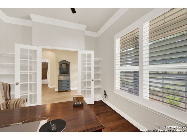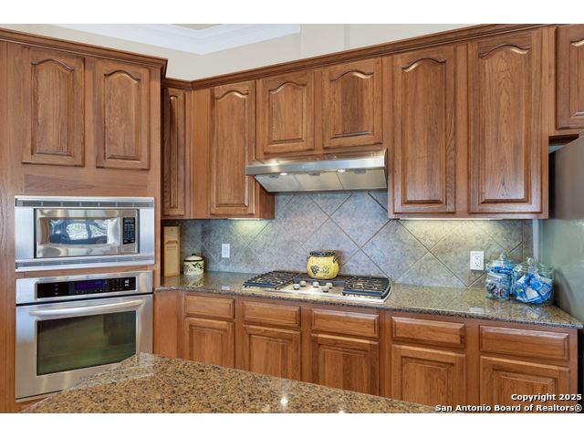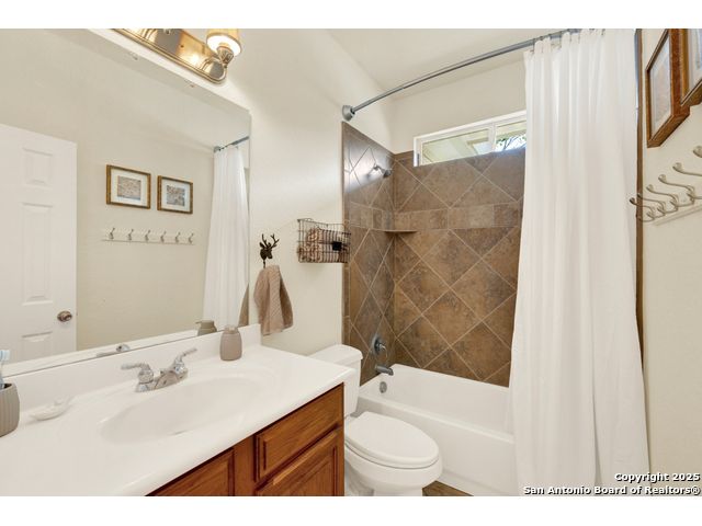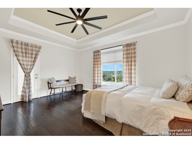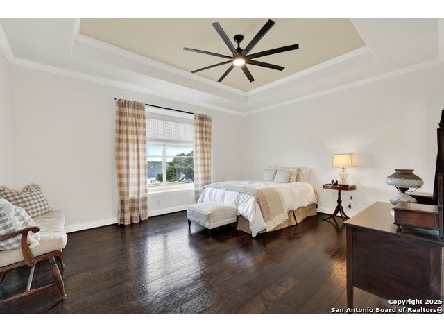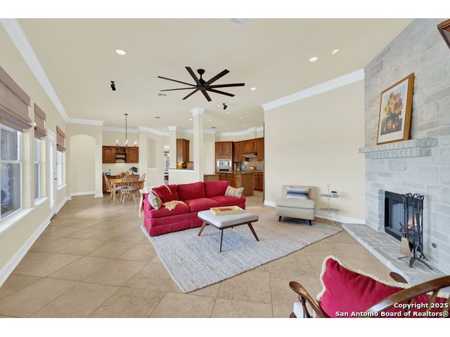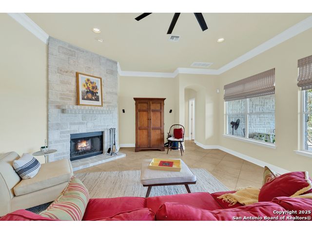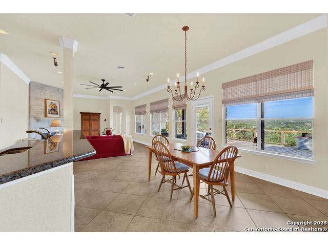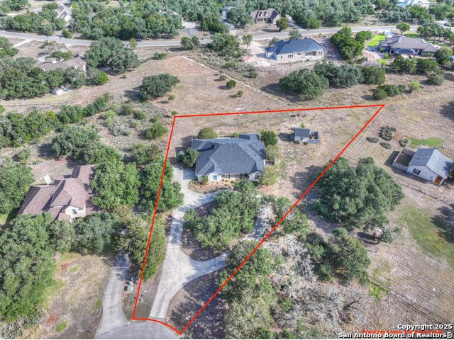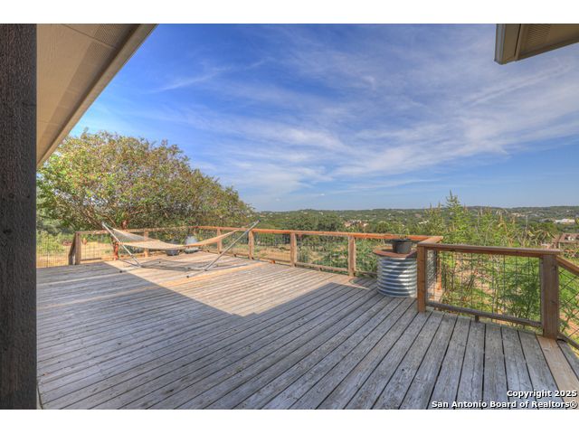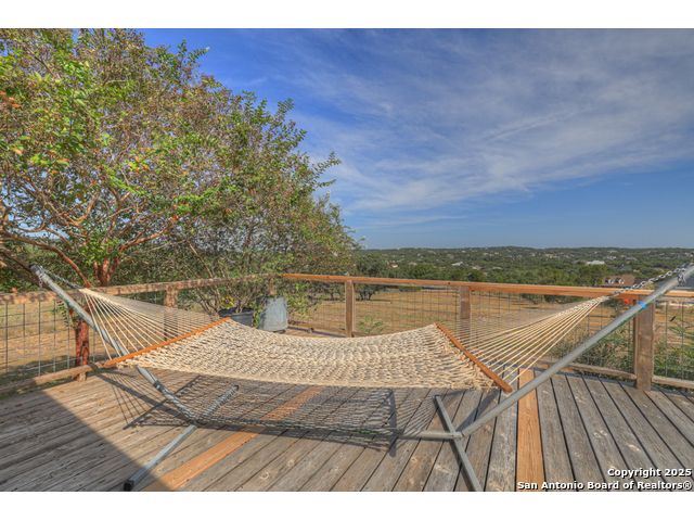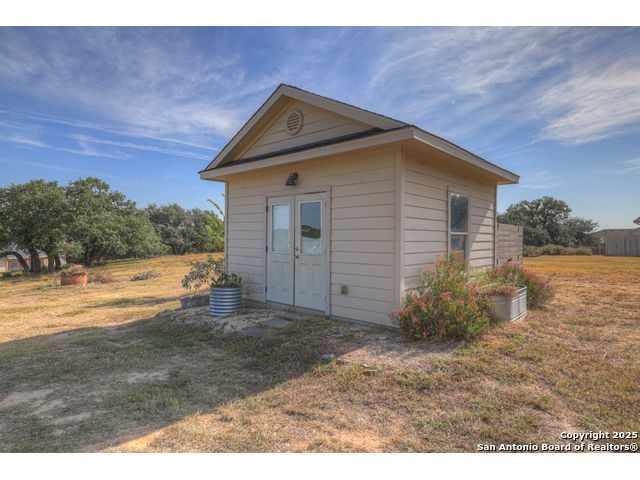$20,000 OFFERED TO BUYERS FOR BUY DOWN/CLOSING COSTS ON THIS BEAUTIFUL SINGLE STORY HOME WITH SPECTACULAR VIEWS. Open floor plan features a rock fireplace with gas starter, and a wall of windows overlooking the deck, backyard and distant hills. The floor plan consists of 4 bedrooms PLUS a study with double French doors, formal dining room, breakfast room, and 3 full bathrooms. The spacious island kitchen has granite counter tops, gas cook top, built-in oven and microwave, and walk-in pantry. You will love the elegantly remodeled primary bathroom with a soaking tub and tiled shower. The laundry room features a sink, cabinets, and ample counter space for folding. All of the trim, shelves and crown molding and baseboards have been freshly painted. A storage building provides additional space for your lawn equipment and supplies. The cul-de-sac street is supremely quiet and private having just 3 homes. The adjacent lot to the rear is available for purchase with the house. River Chase amenities include 2 parks: a 58-acre park on the Guadalupe River with pavilion, hiking trails, camping grounds, and sports courts, plus the 32-acre clubhouse park with pools, fitness center, walking trails, tennis courts, disc golf, fishing pond, and Veteran's garden. Located just minutes from Historic Gruene, restaurants, retails shopping, music venues, theatres, and health care, and convenient to both Austin and San Antonio.