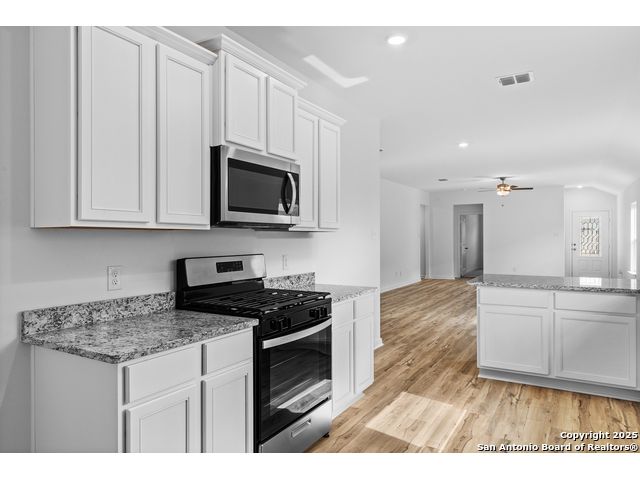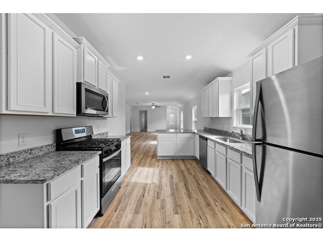 Boasting with charm, this single-story home at Preserve at Medina has plenty of space. This four-bedroom home features two full baths, a spacious family room, chef-ready kitchen, private primary suite with an en-suite bathroom, and more. Enjoy the thoughtfully designed, open-concept layout of this home, creating the perfect space for entertaining. Additionally, this home comes with a host of impressive upgrades included at no extra cost such as energy-efficient Whirlpool appliances, sparkling granite counte